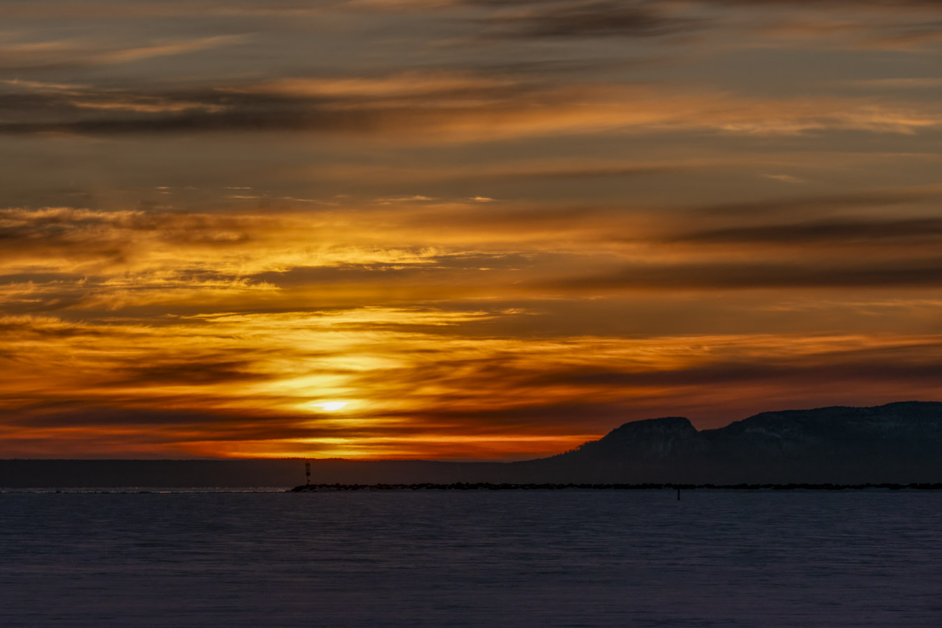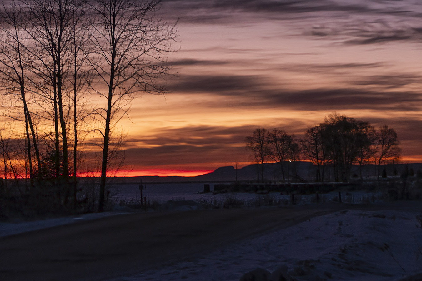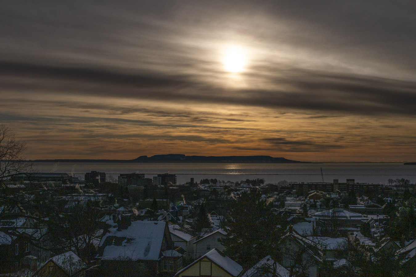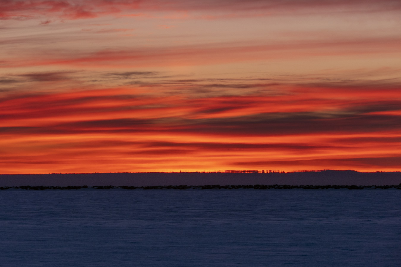 Thunder Bay – Friday February 21, 2025 by admin Finally a sunrise that was worth getting out of bed for…. Colour…lots of colour 360 degrees of colour and the sun was starting to clear the horizon Its there behind those clouds Your morning sky photo