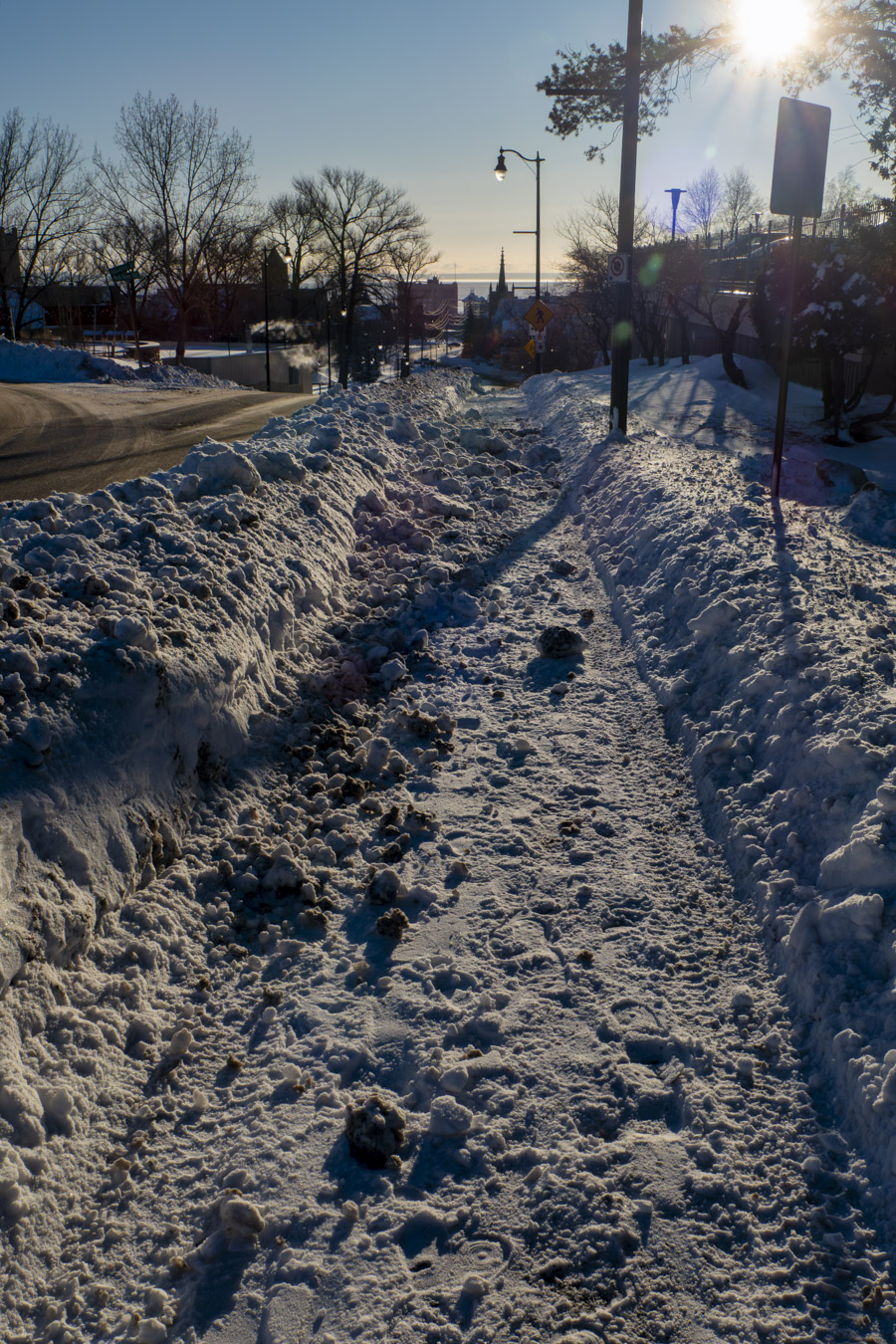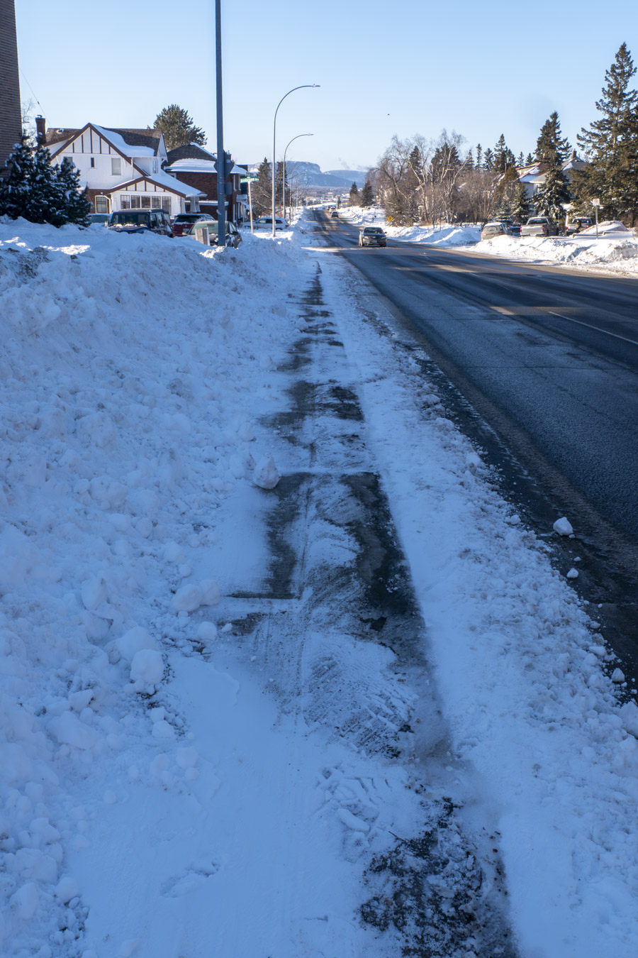 Our high salaried residents of City Hall need to come up with a better design for sidewalks to accommodate snow clearing operations. Leaving that sliver of a snow wall in between the street and the sidewalk is beyond stupid. Street plows push the snow onto the sidewalks. Sidewalk plows push the snow back toward the street. At some point, there is no room left for snow storage in that small space between the sidewalk and the street. What happens is that the sidewalk becomes narrower and narrower.