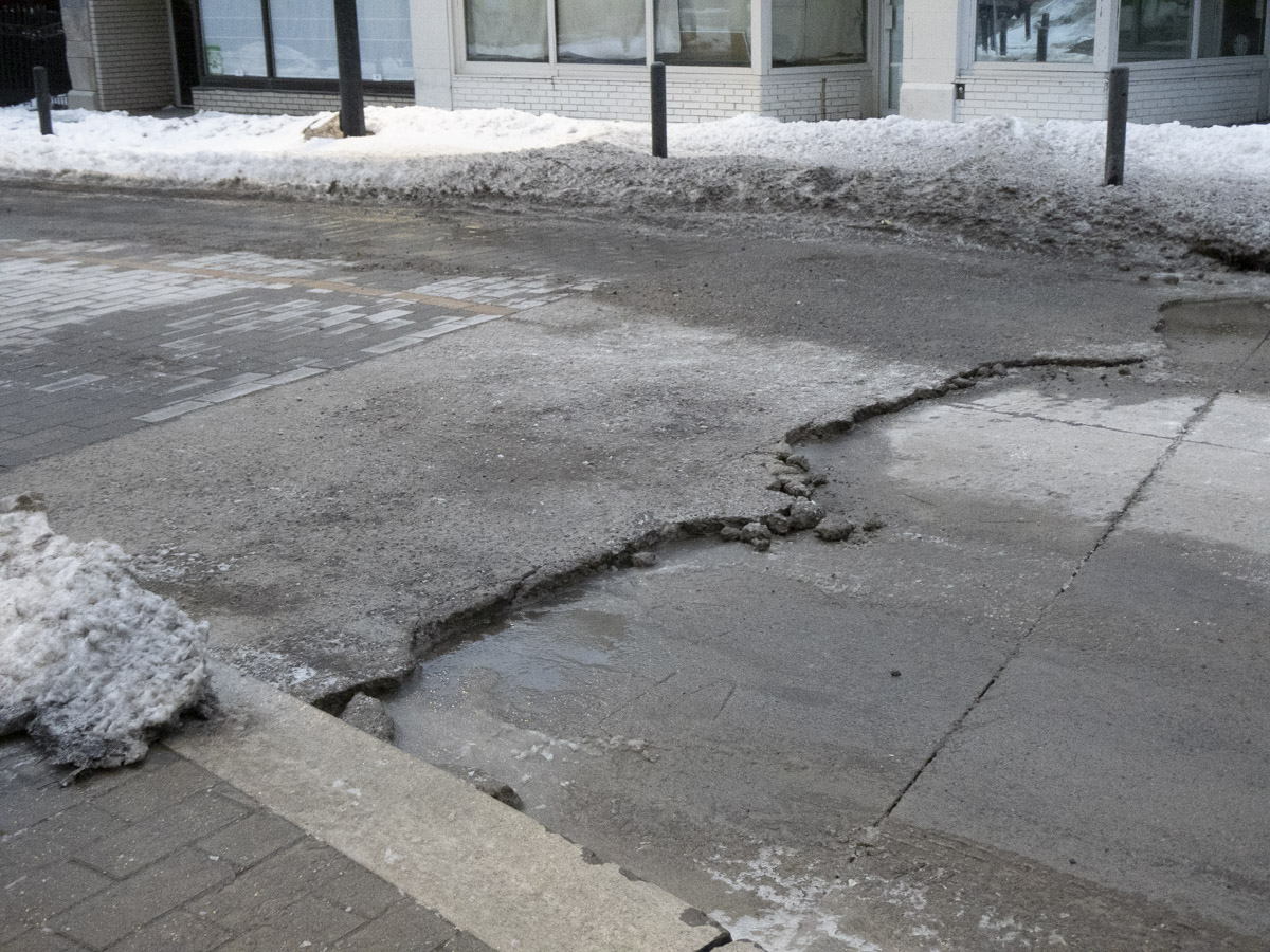 The ramp on Red River Road is disintegrating. Work won’t begin until May? Maybe?