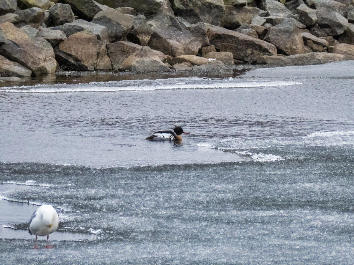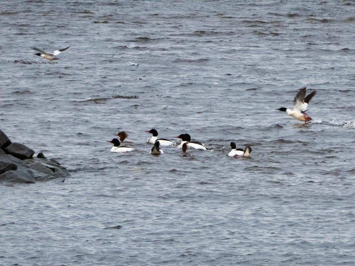The Common Mergansers are still hanging around.