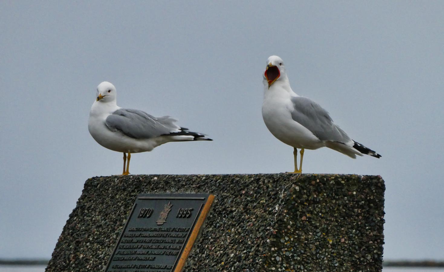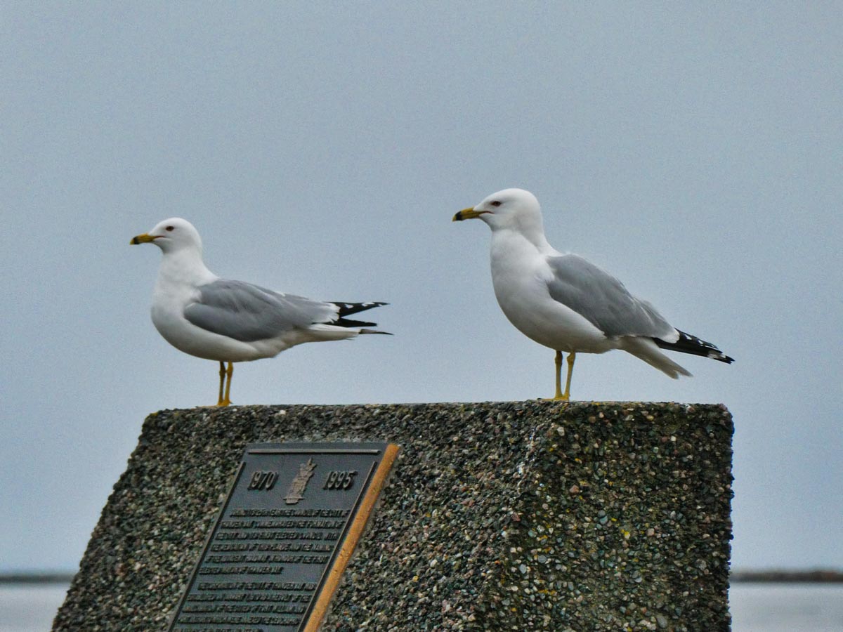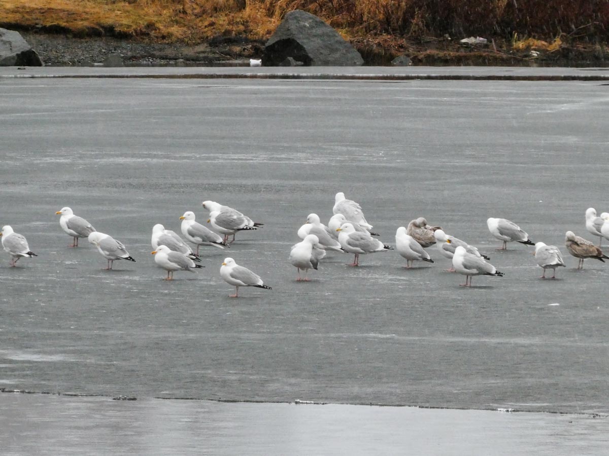 Gulls resting on some of the last ice in the harbour.