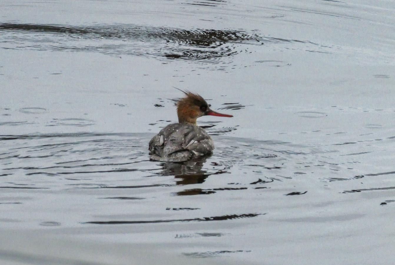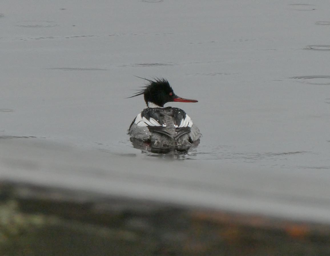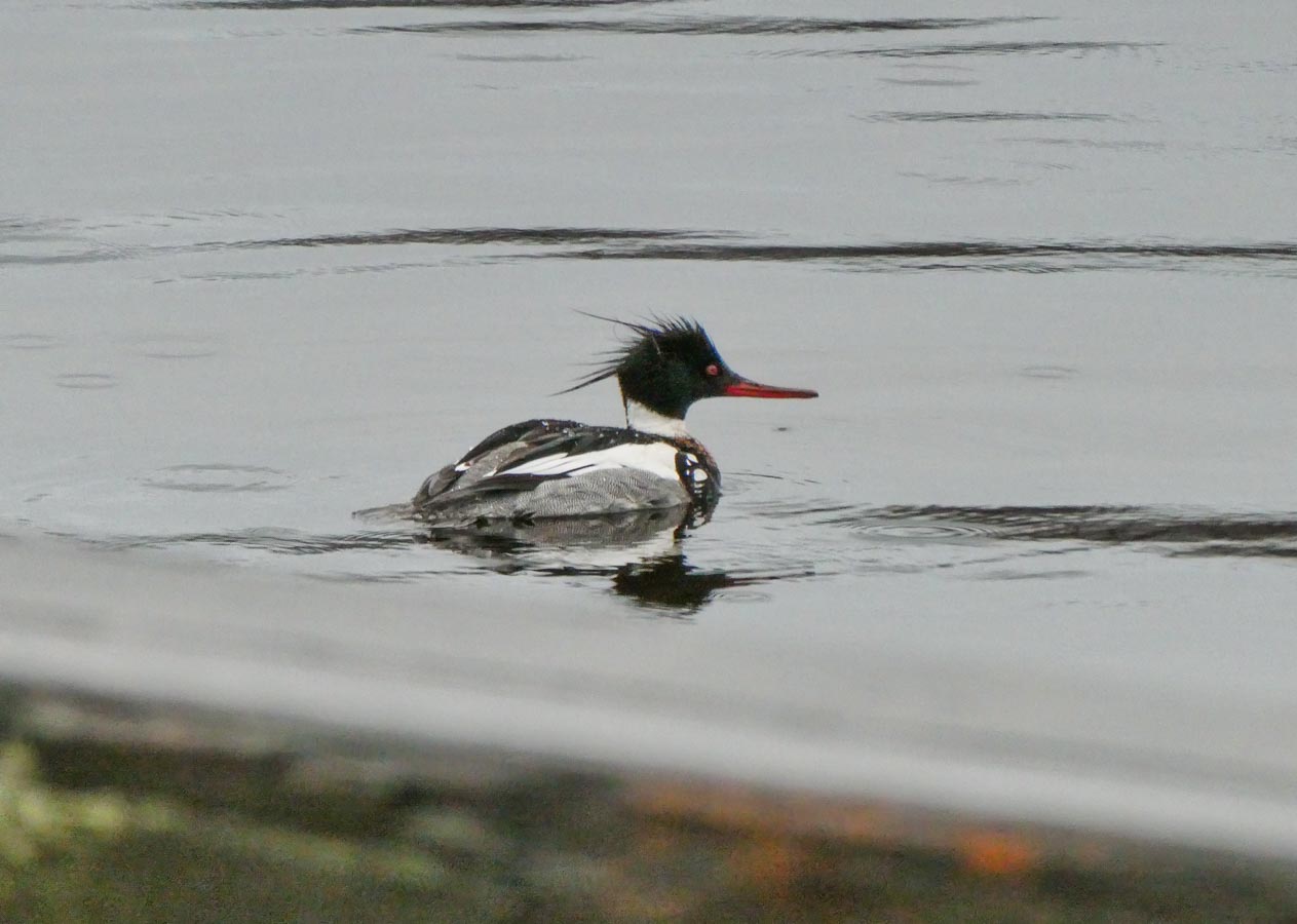 The Red-breasted Merganser still hanging around. Male