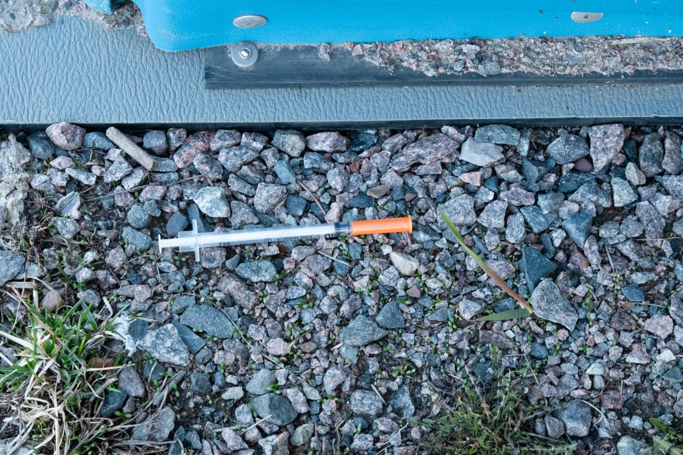 I remember when I used to care about finding a needle laying on the ground. I use to treat them like hazardous waste. Bring it to the proper authority for disposal.  Not now. They are common. You can find them laying around everywhere.  That is the world we live in now.