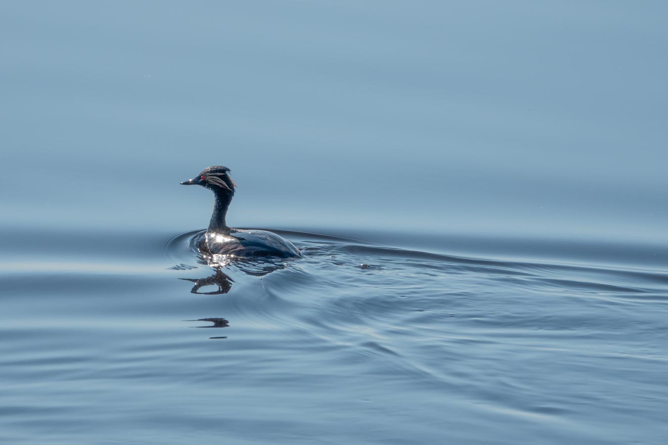 Not sure. Red eyes, looks like it could be a Red-breasted Merganser. I am no expert.