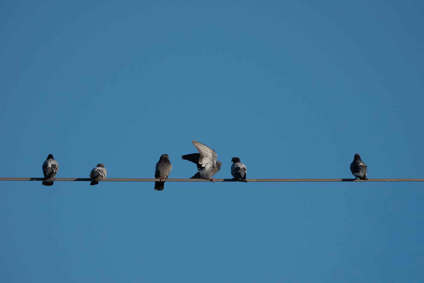 We have a pigeon showing off in the centre and a social isolationist on the right