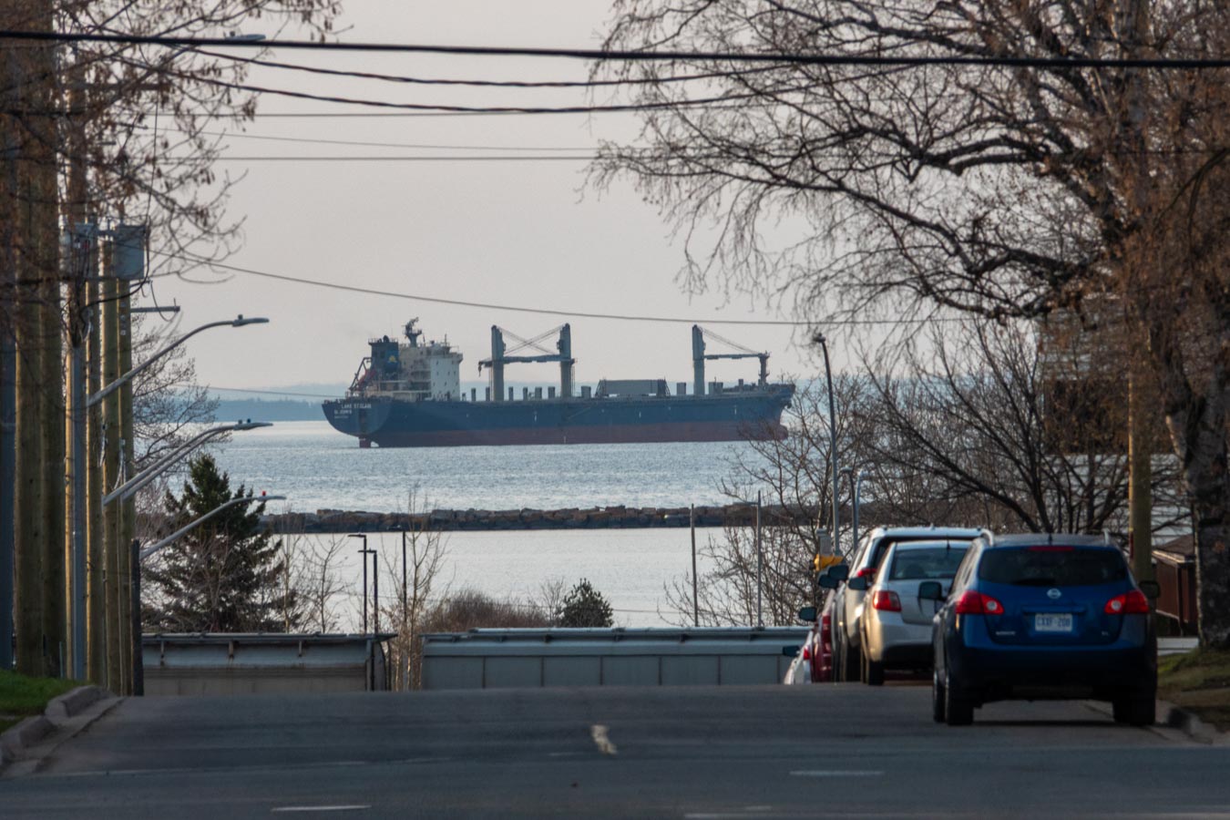 MV Perelik at Thunder Bay Terminals, MV Federal New York and MV Fivelborg at Keefer Terminal