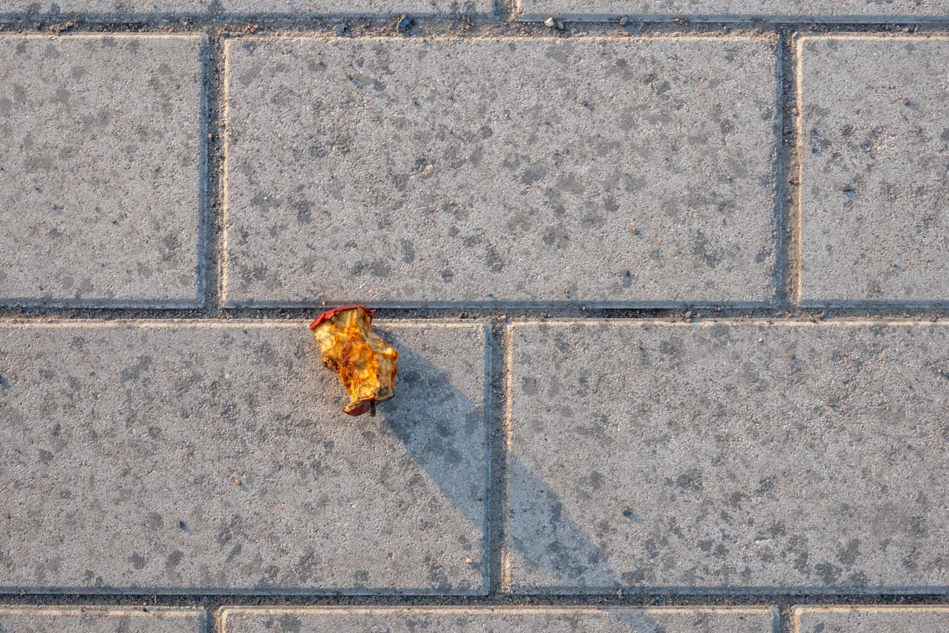 Nice that this is not a piece of discarded fruit. Someone did eat some of it. I still think there is still some meat left on them bones. After i finished with an apple, the seed pod was all that was left, and sometimes not even that.