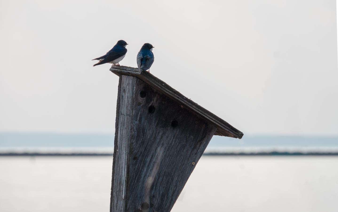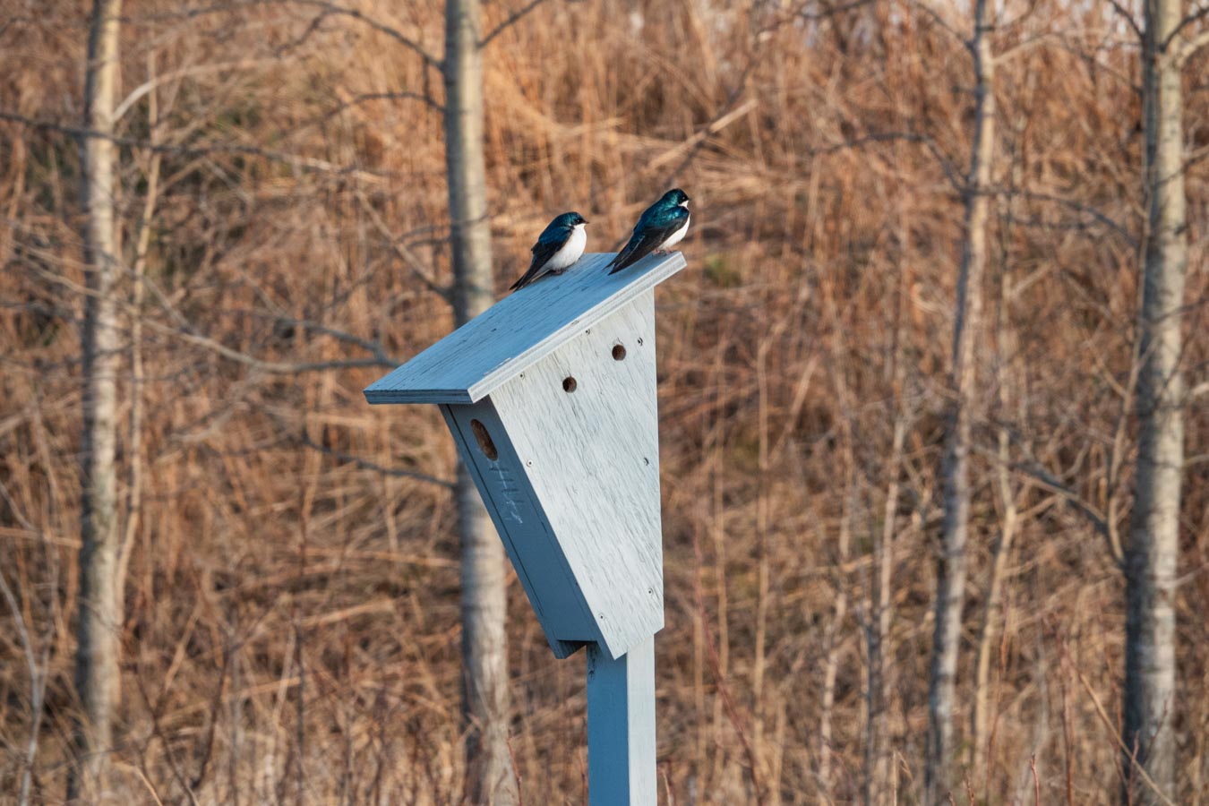 Tree Swallows enjoying the sun. I guess the roof is their patio.
