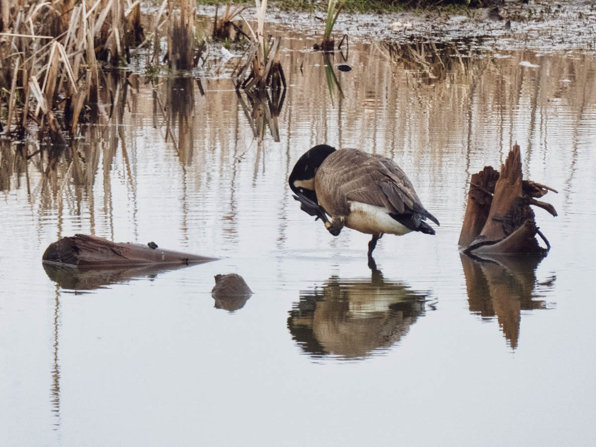 Busy sprucing up. Hard to get at those face feathers.