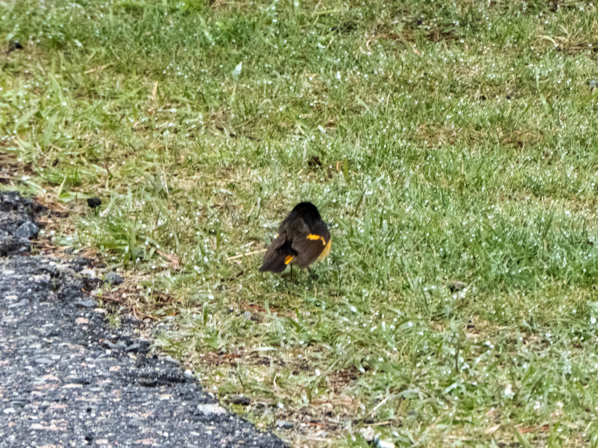 A male American Redstart Warbler.  Not a great photo as those birds are fast and very jumpy.  I have never seen one before. Hope to get a better photo one day.
