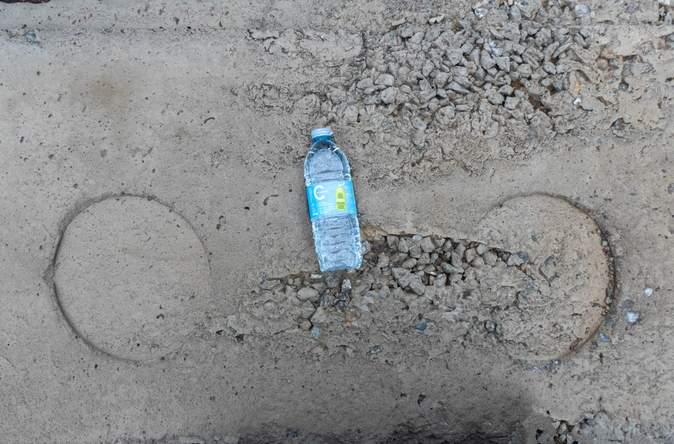 Trash in context. Colour on a grey day.