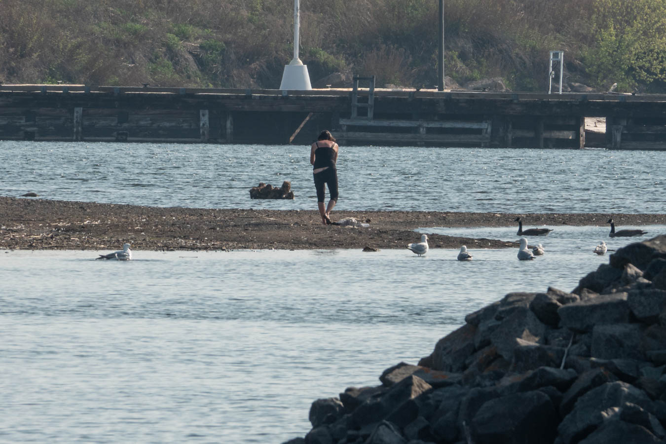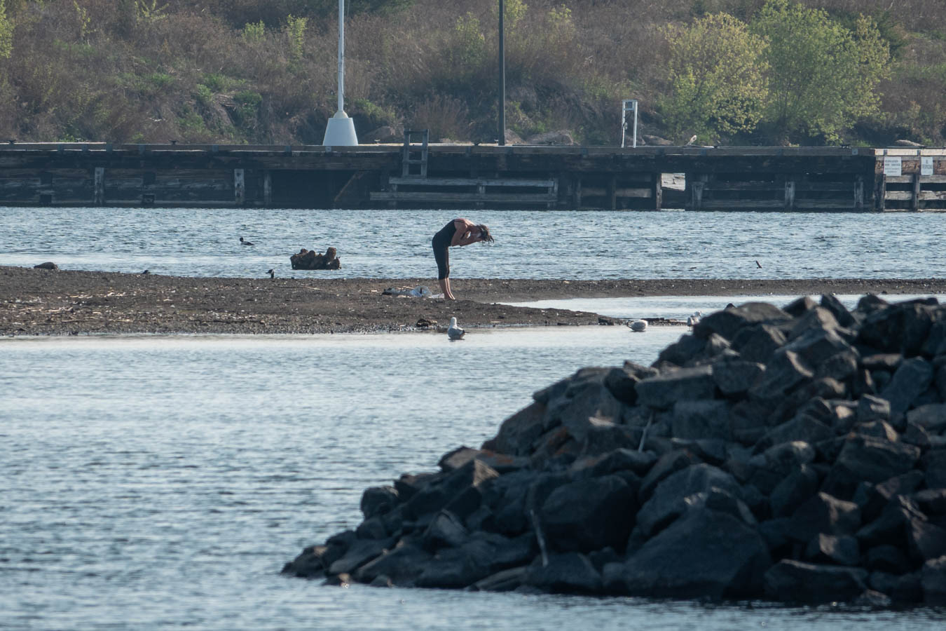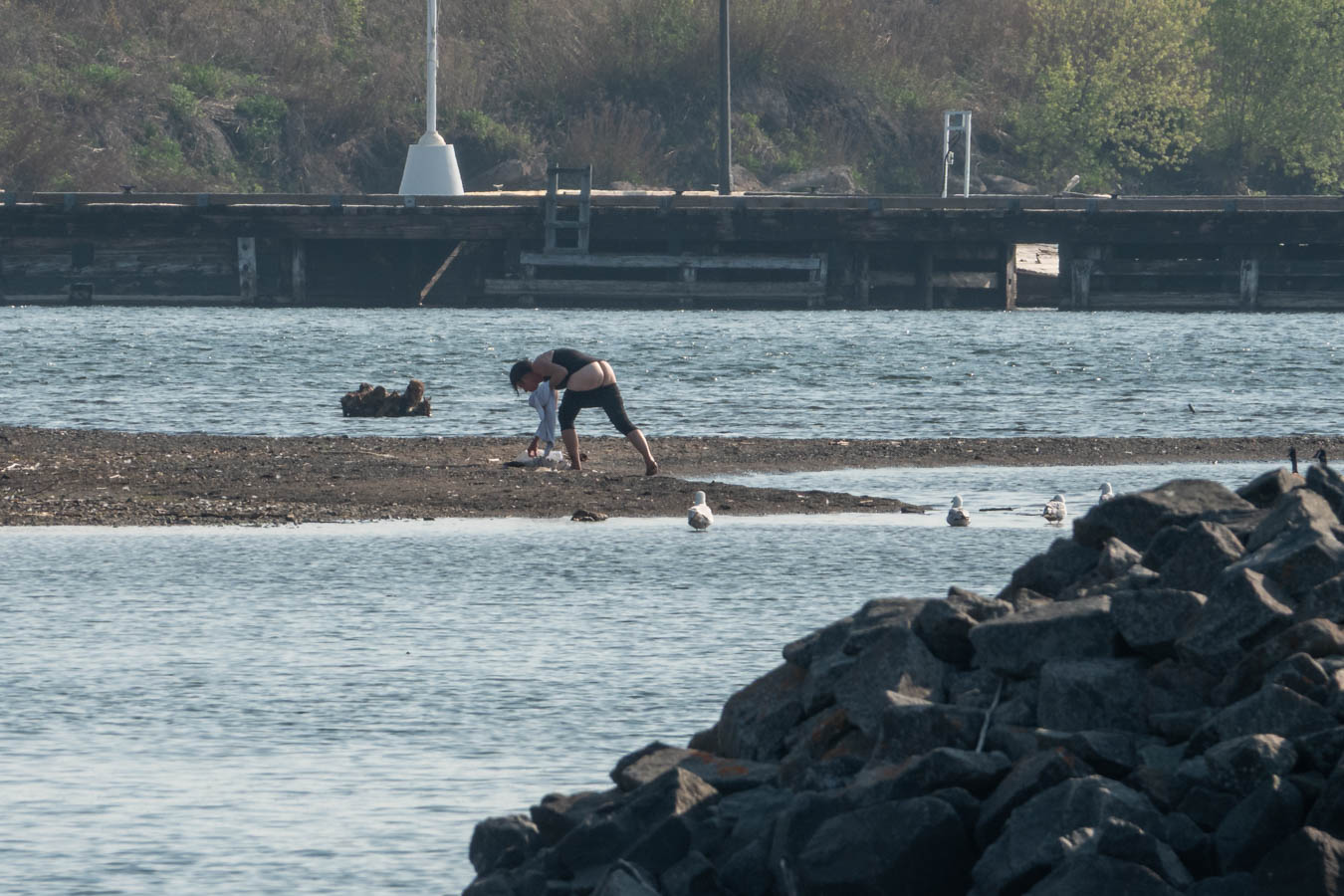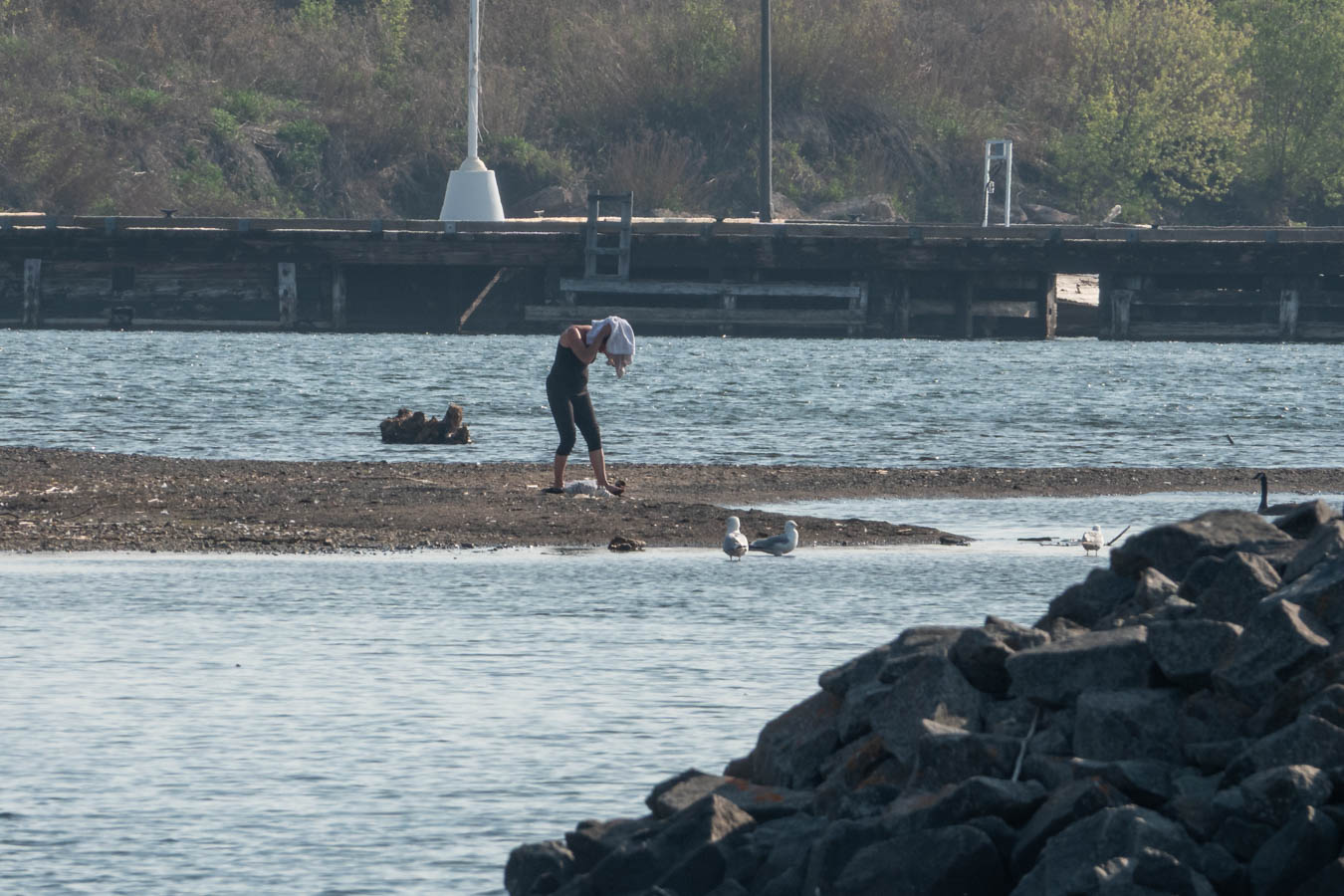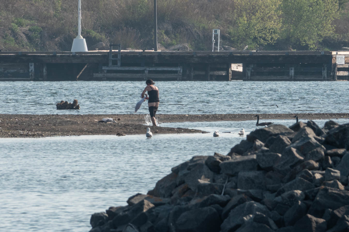 The bather is attracting quite a crowd. Nice view for anyone walking into Marina Park via overpass.