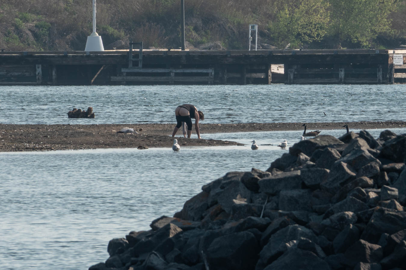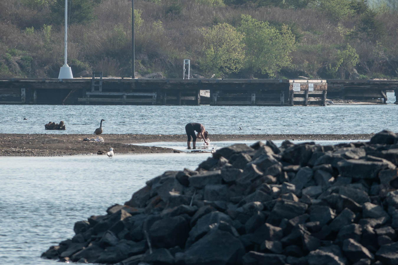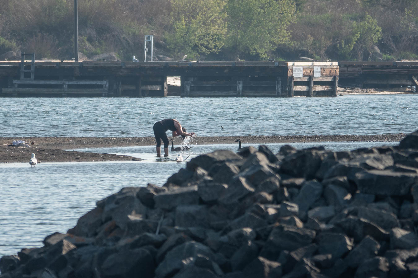 More rinsing. The goose and gull are still not sure what is going on.