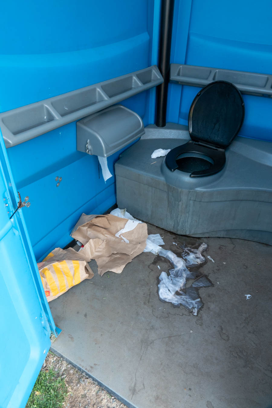 and if the tourists need to use one of Marina Park’s portable toilets, they are greeted by this.