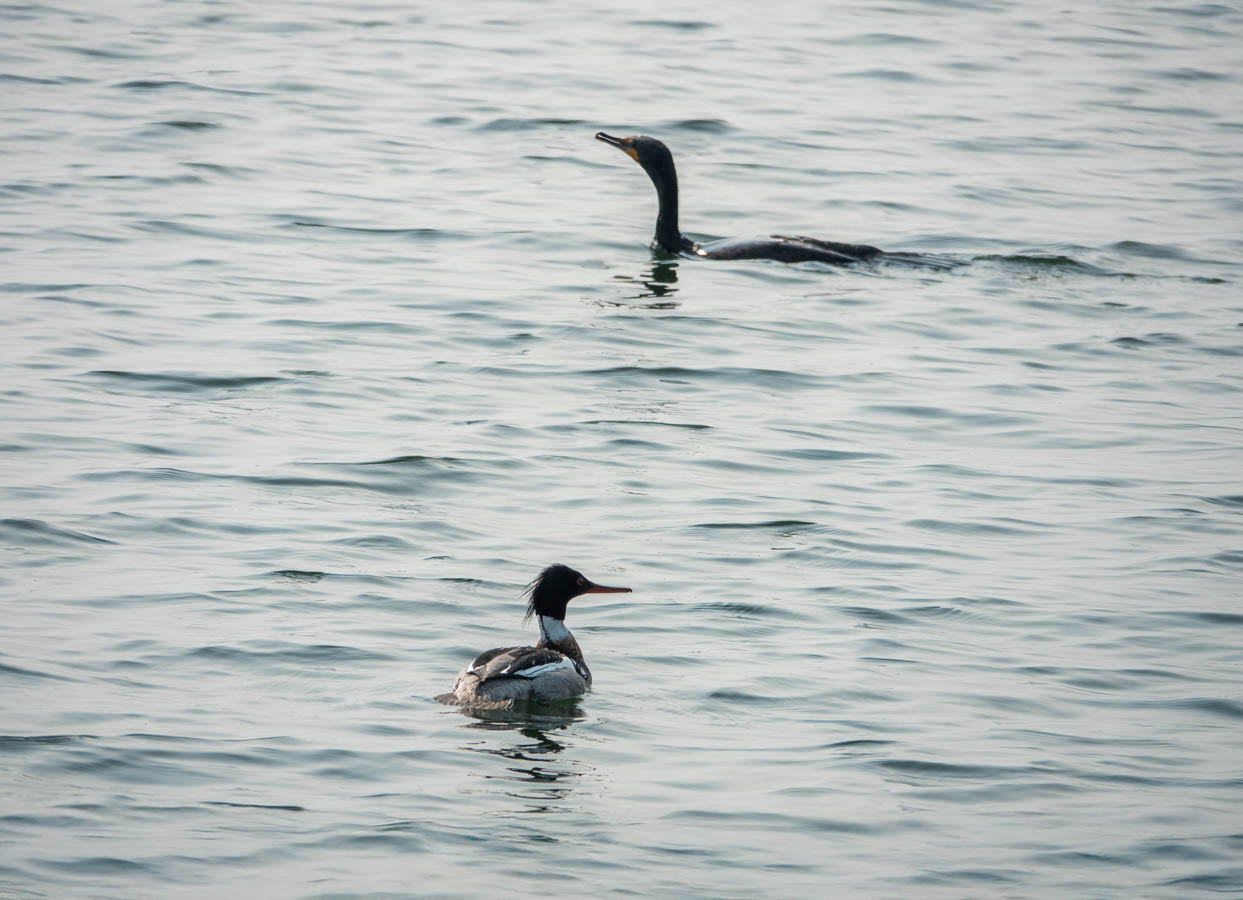 Double-crested Cormorant and Red-breasted Merganser