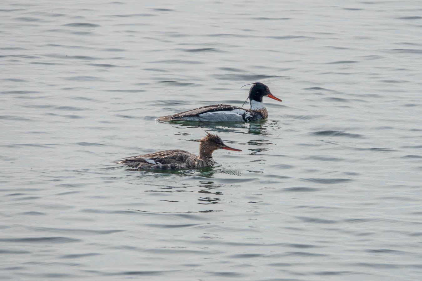 Red-breasted Mergansers.  Still in courting stage of relationship.