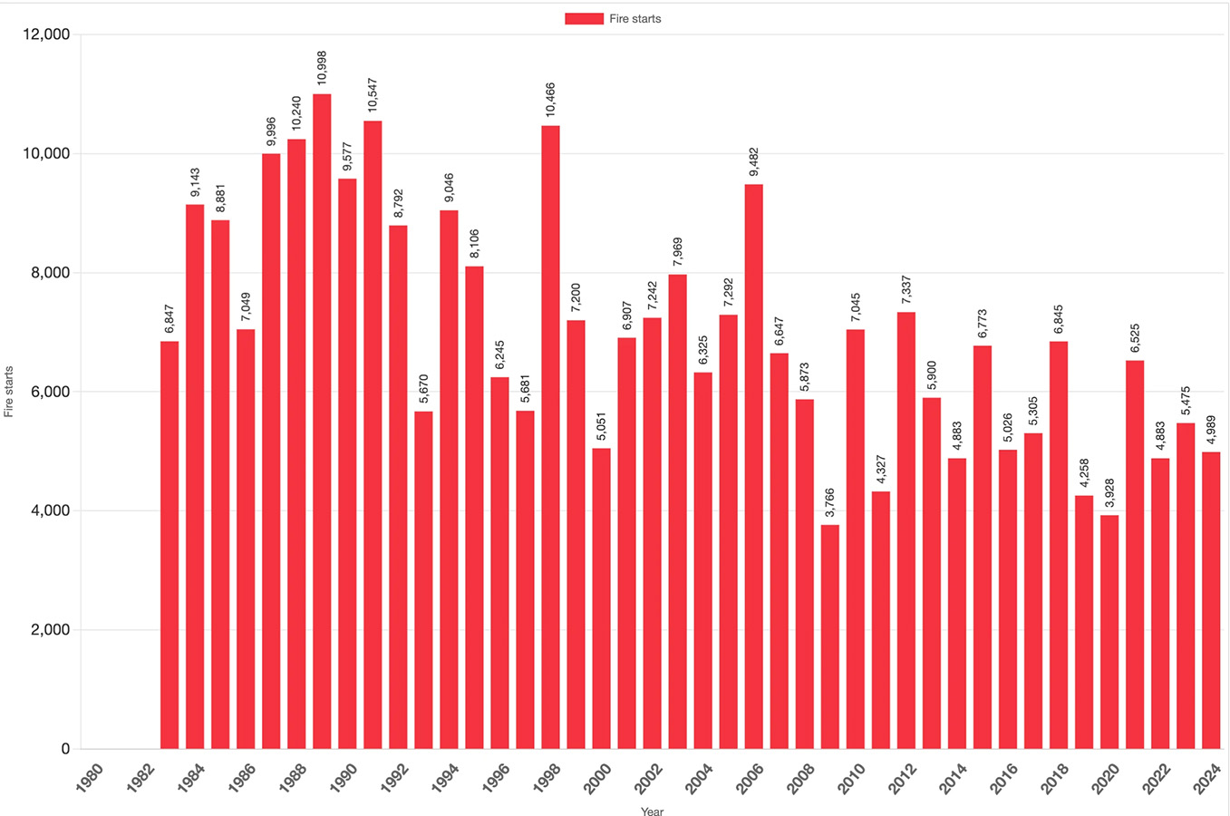 I thought I would look this up…Forest Fires in Canada. The chart only goes back to 1983? Do you see an increase in numbers?