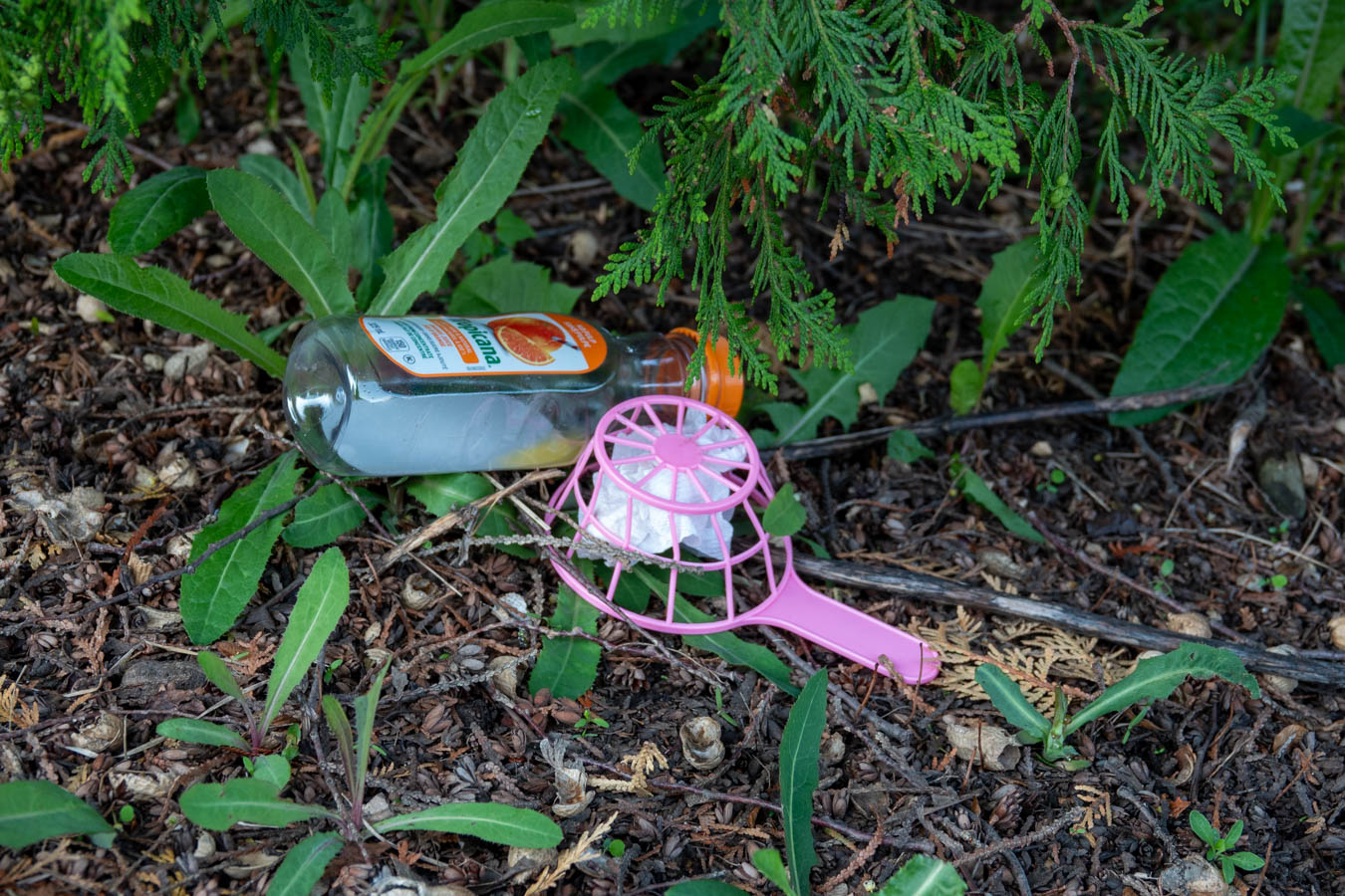 The dandelion elevates the trash. Makes it more photogenic. Its like lipstick on a pig.