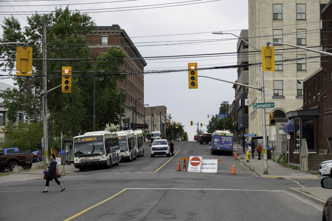 which moved the buses to this section of Cumberland Street. This section is closed to through traffic.