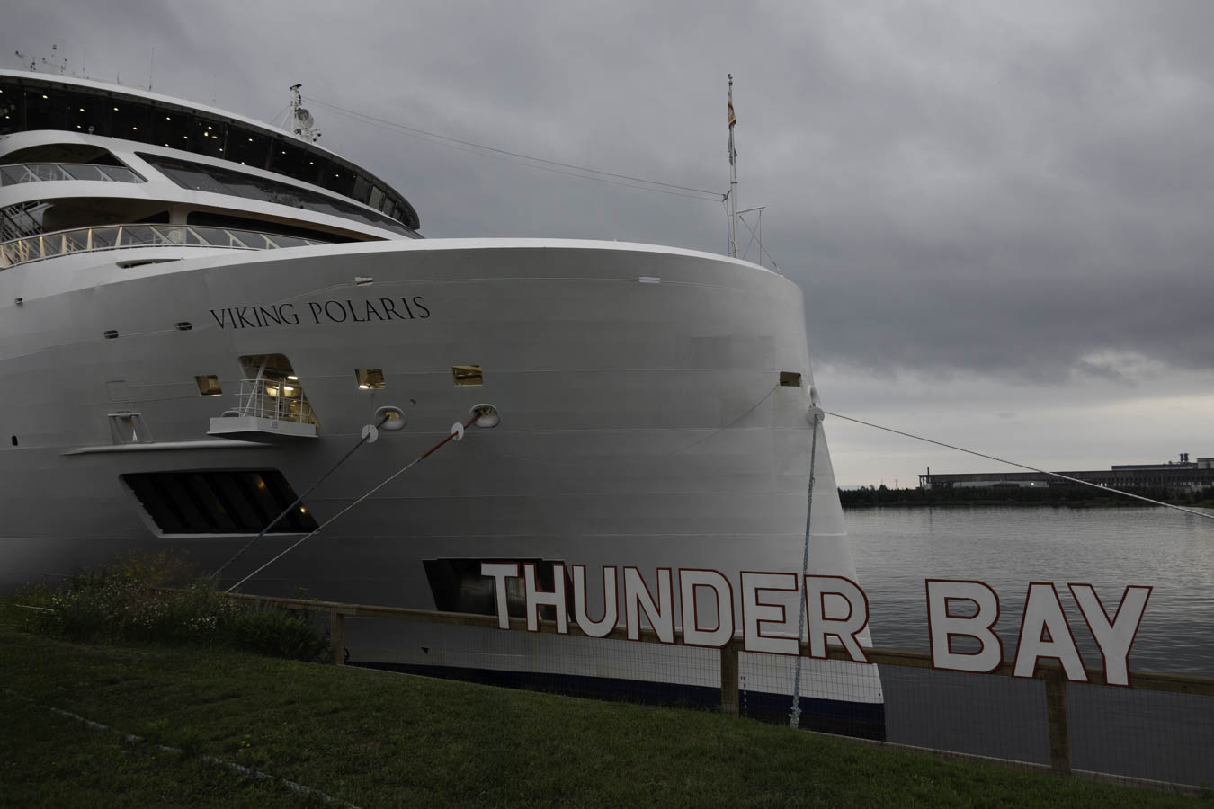 MV Viking Polaris in port. Those two trees needs to be cut down.  They block the bow.