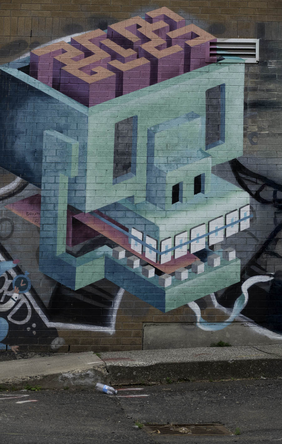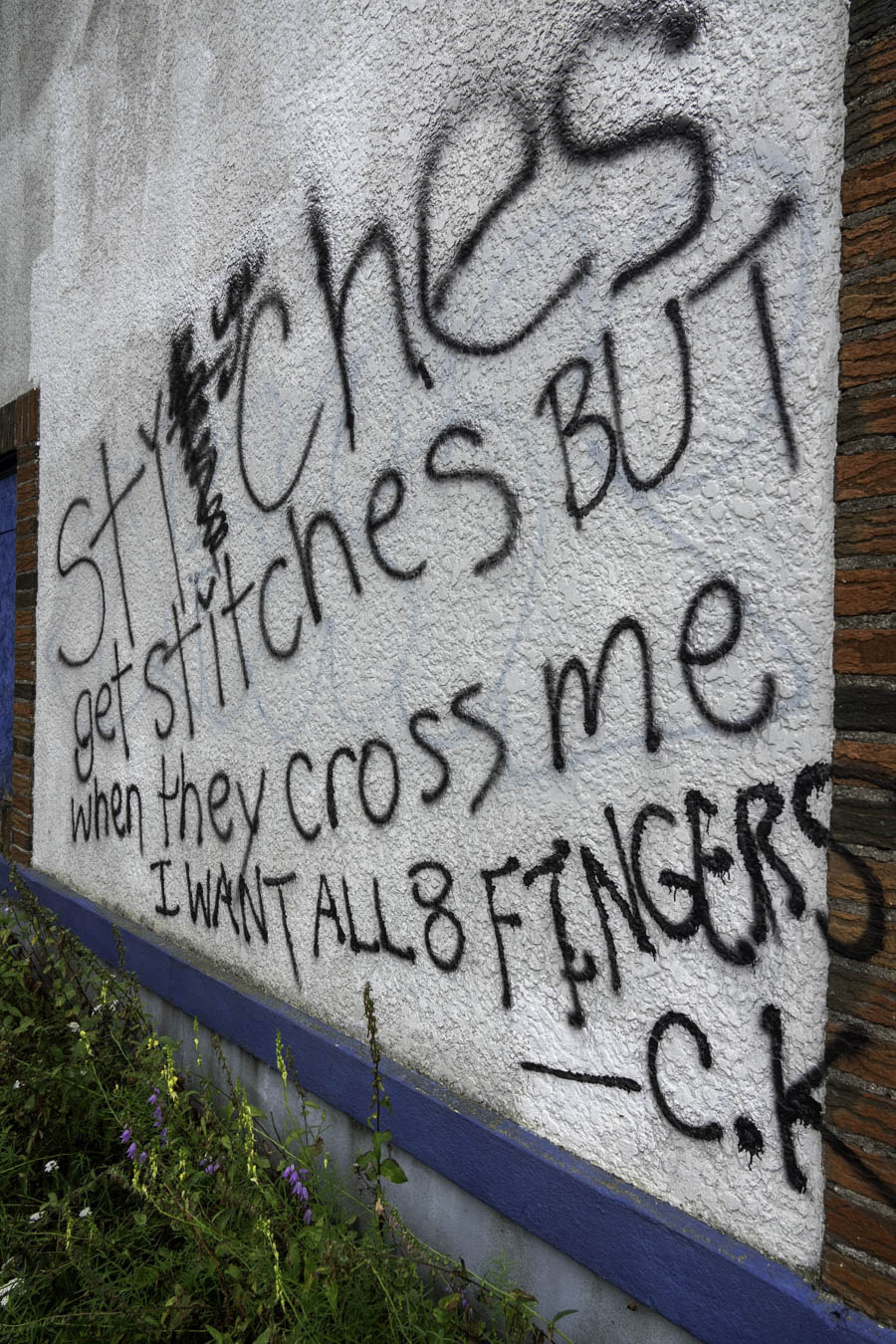 Building owner needs to grab a bucket of paint and cover the graffiti.  It would be nice if there was a heavy penally for doing this type of damage to property.