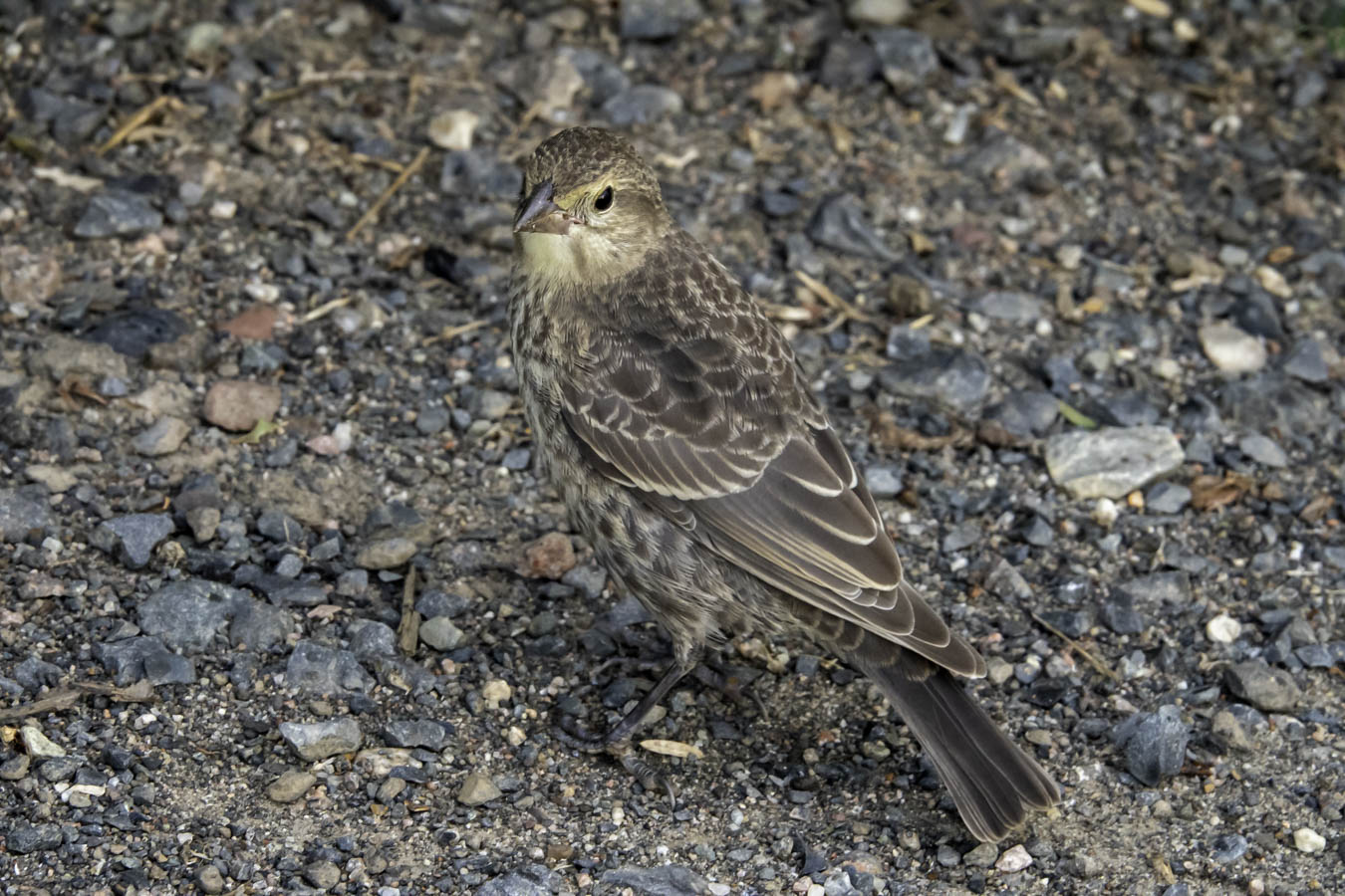 A Sparrow of some sort. Could be a Vesper Sparrow.