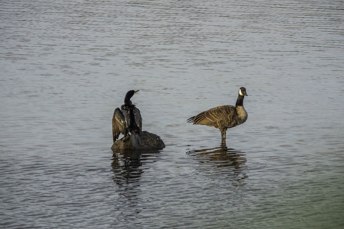 Double-crested Cormorant and a Canada Goose