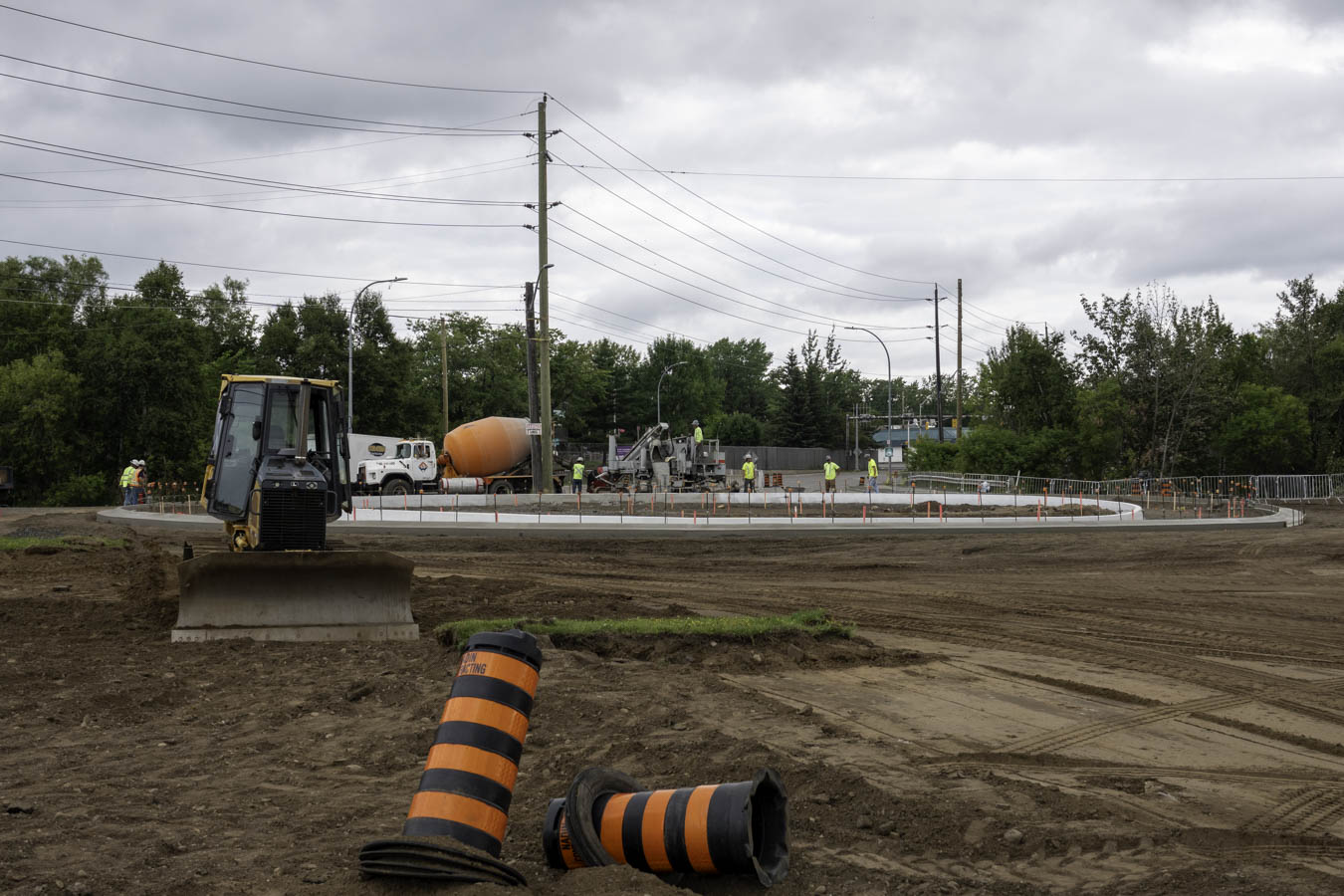 Concrete curbing being put in place on the new roundabout.