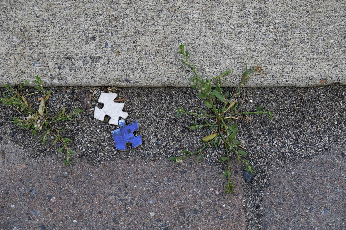 A puzzling scene. Puzzle pieces are a rare find along the sidewalk.