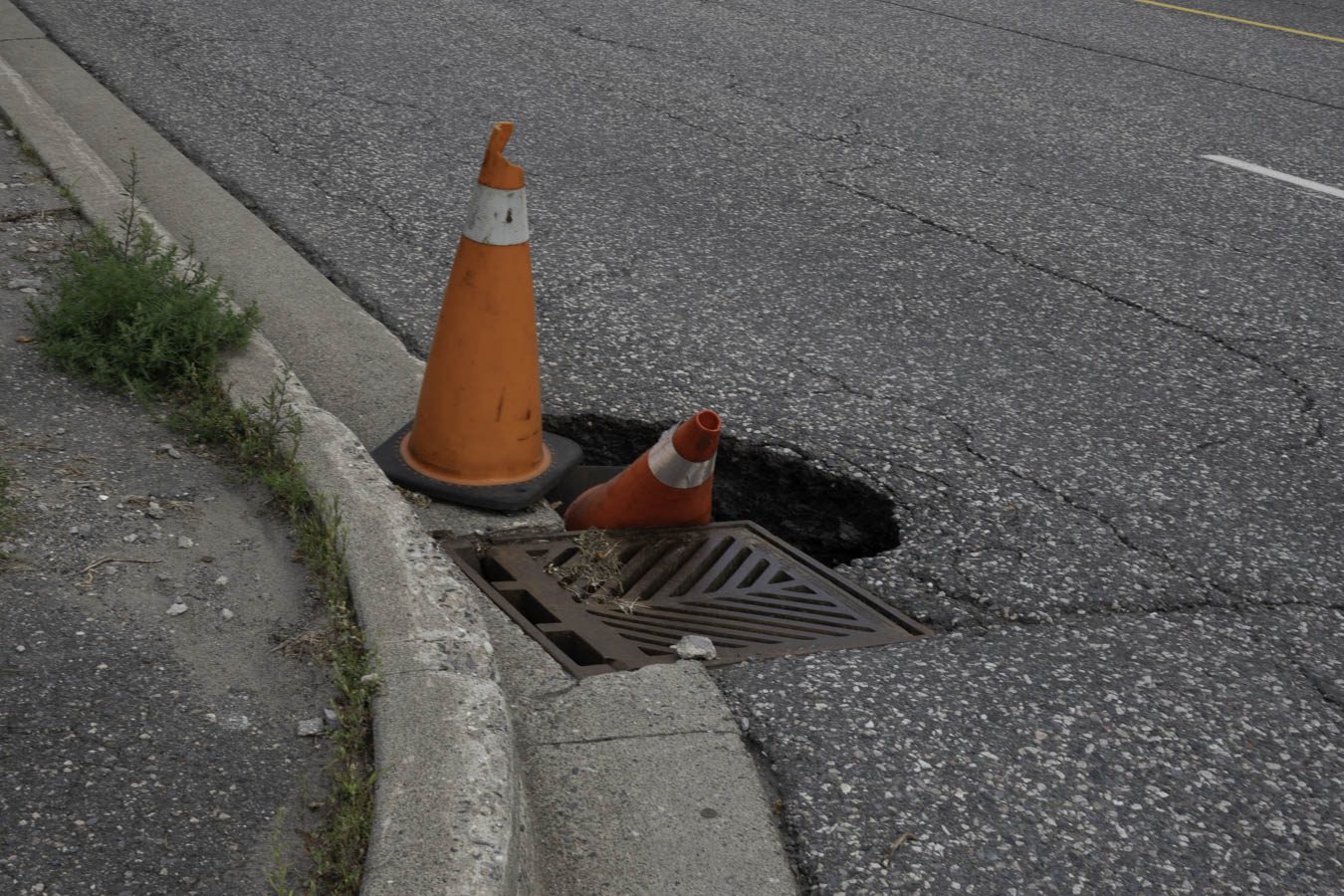 Why not just fix it? Its a danger to any vehicle that drives over it. The hole is in the traveled portion of the street.