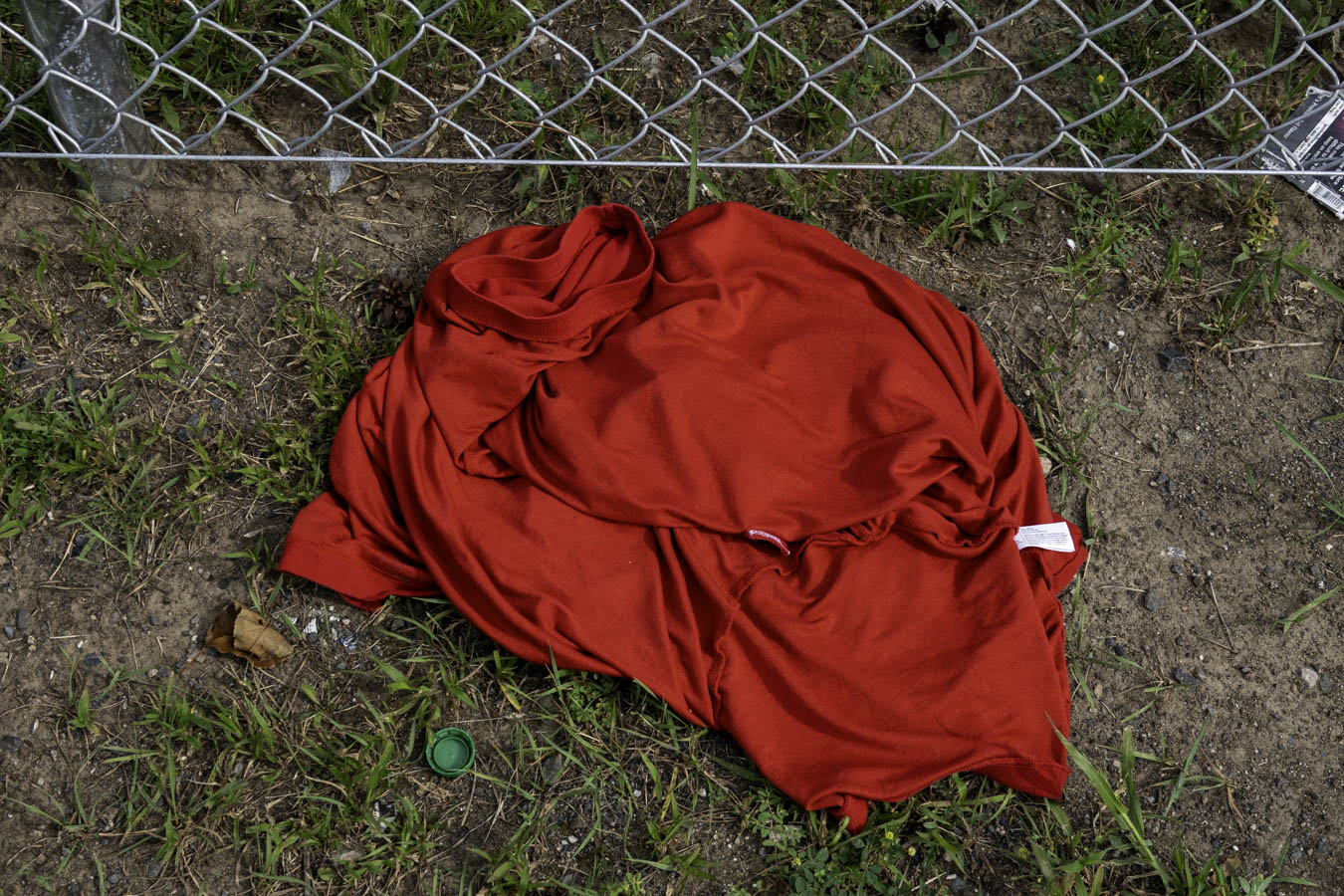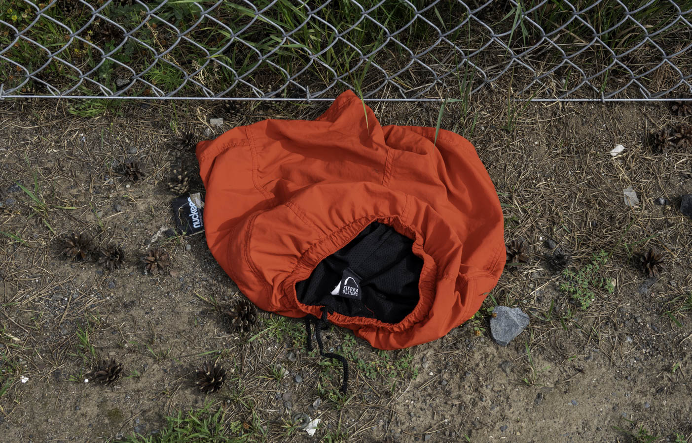 Discarded item. Its colour. Red. Not a lot of red around this morning.