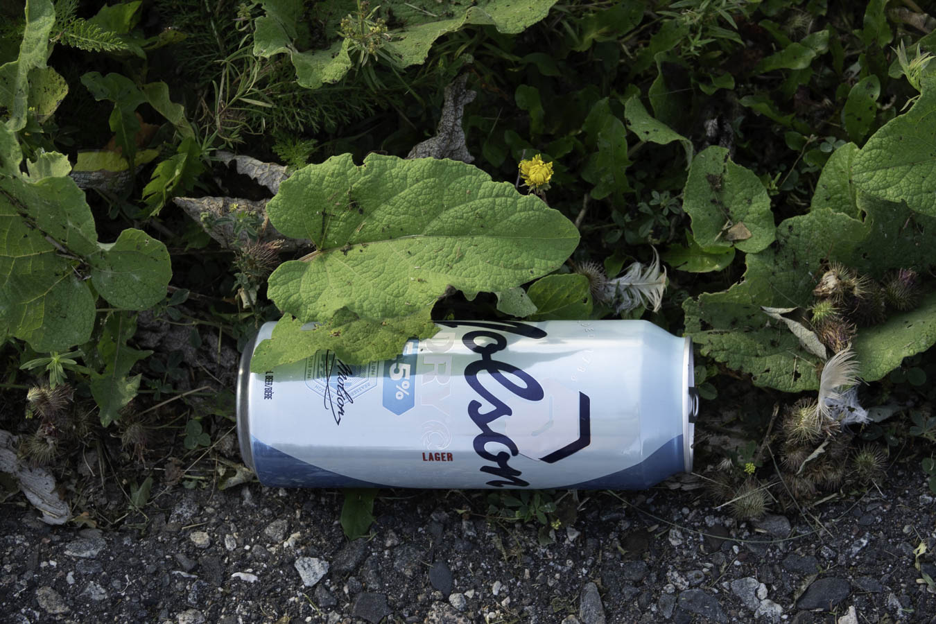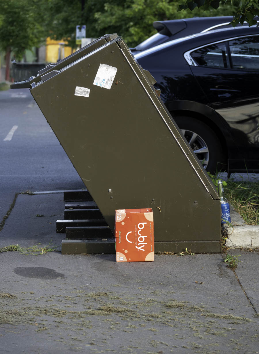 Trash with a view. Cigarette package.