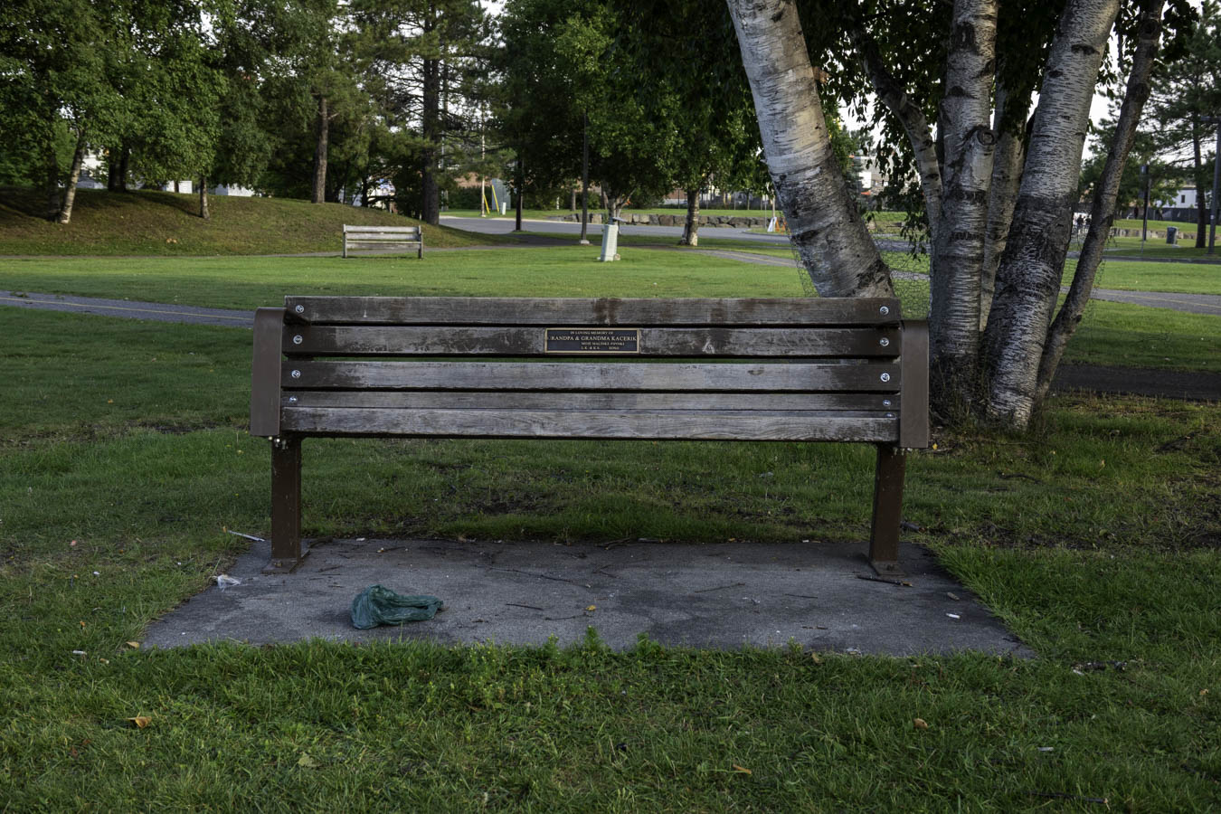 Empty dog poop bag left behind. Hopefully, the person had more than this one bag.