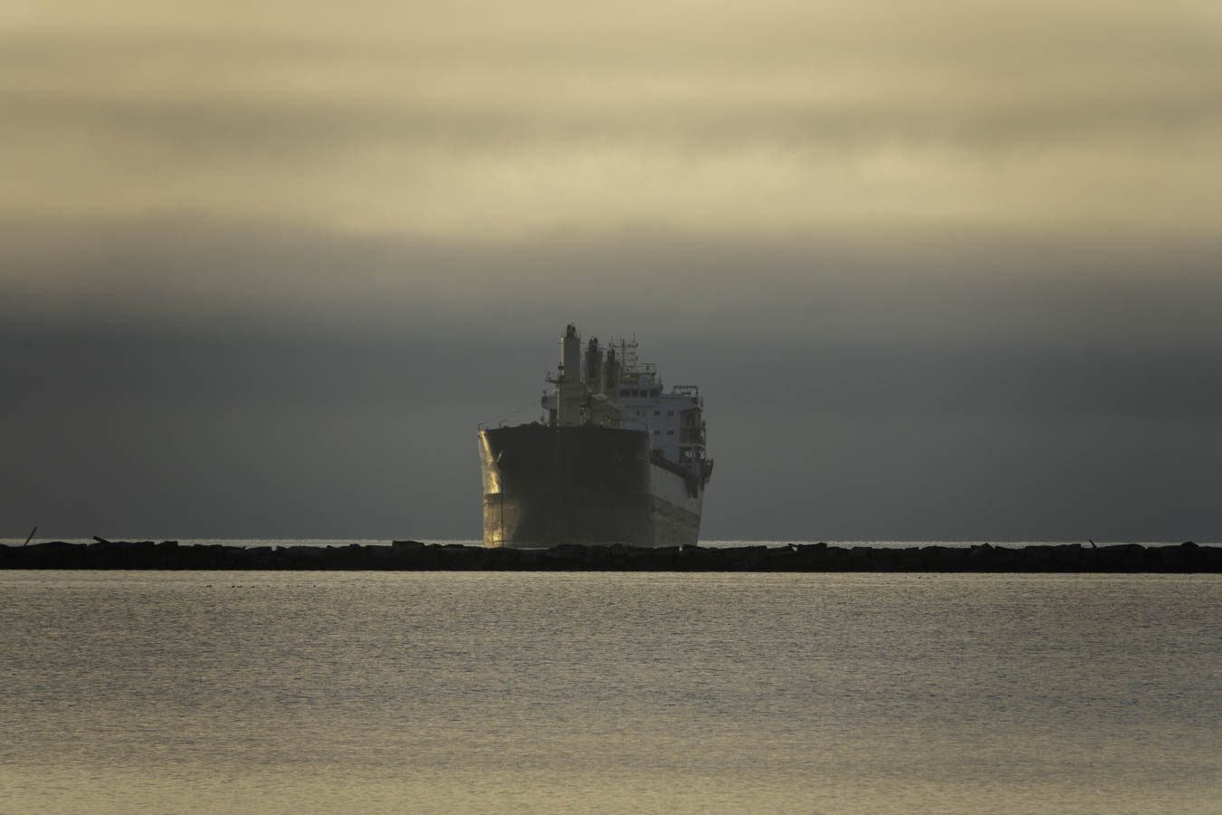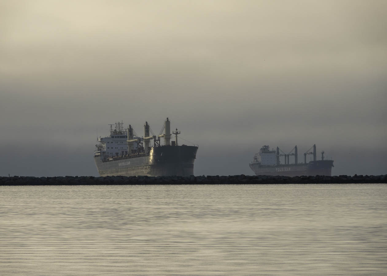 Fog rolls in and out. One minute the ships are visible, the next they are gone.