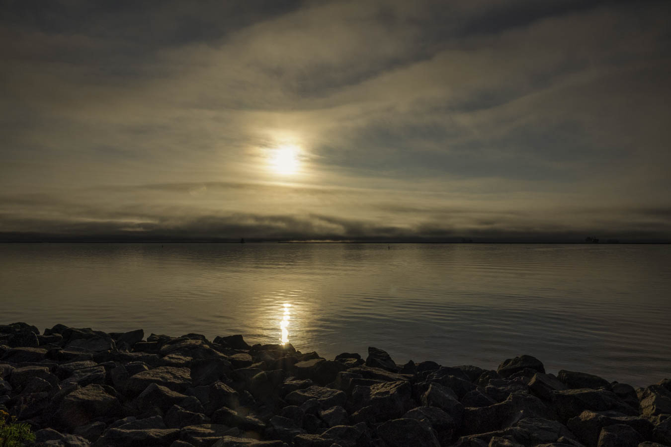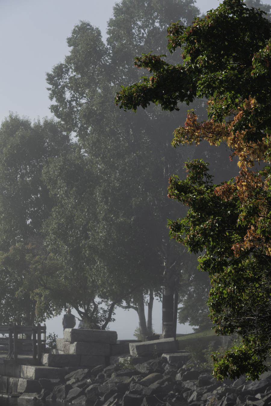 Fog still hanging around the shoreline