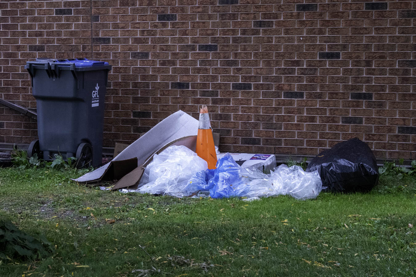 Trash pile so far. What is the purpose of the traffic cone?