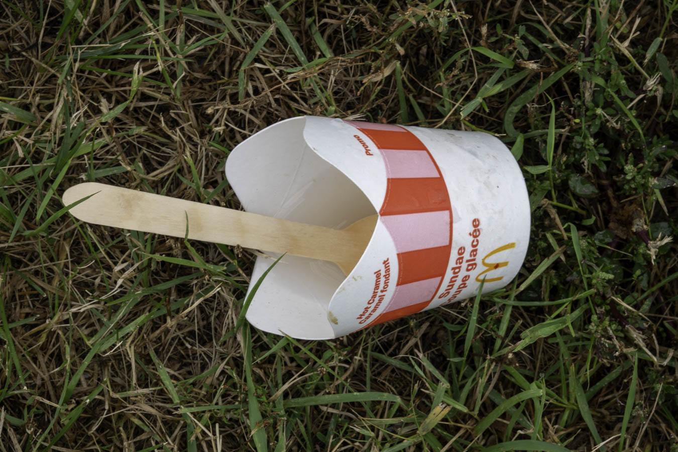 McDonalds Sundae container. Different looking than I remember. Paper cup and wooden spoon.