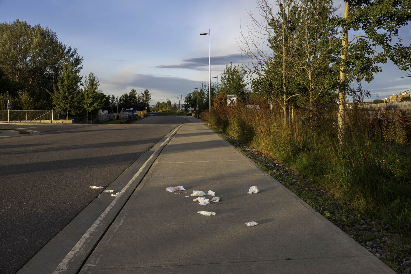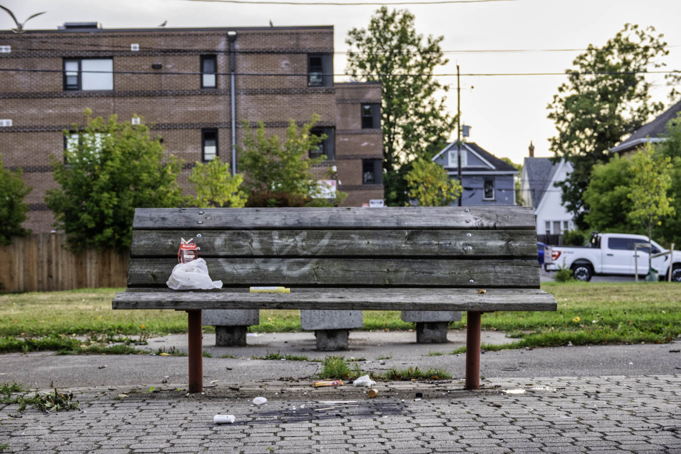 Trash in context. Wilson Street Parkette. I do not believe that anyone using this park places their trash in a trash can. Trash everywhere.