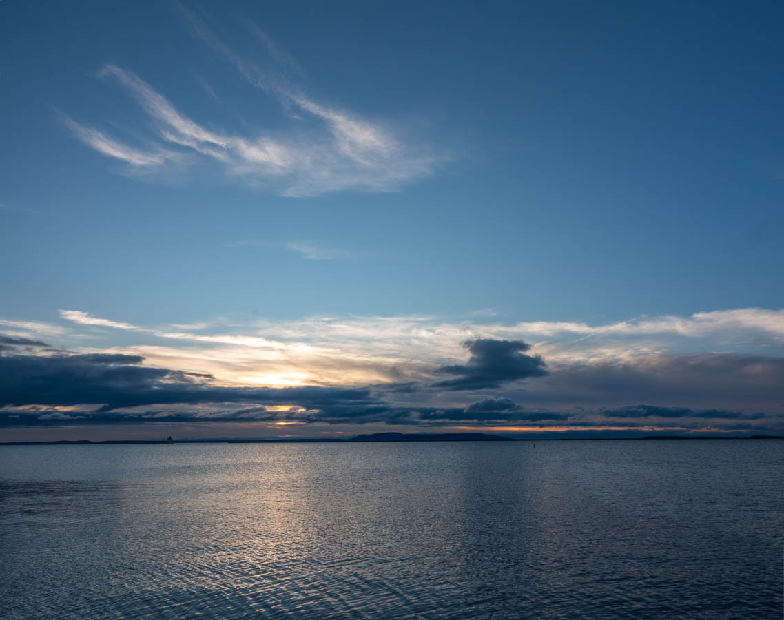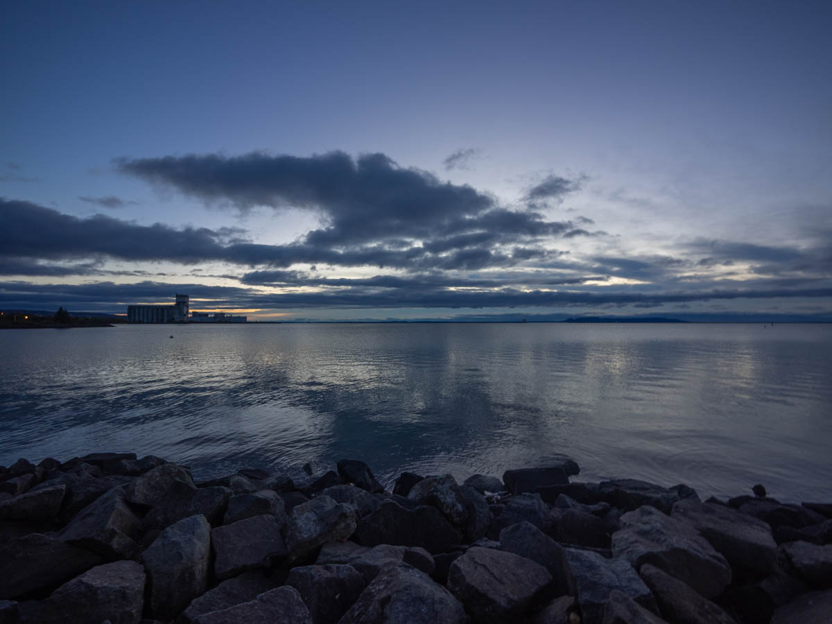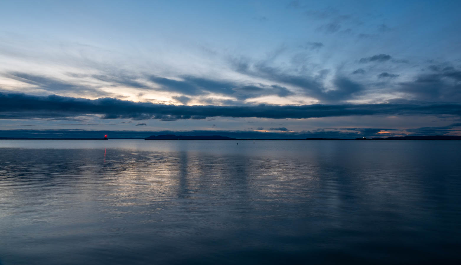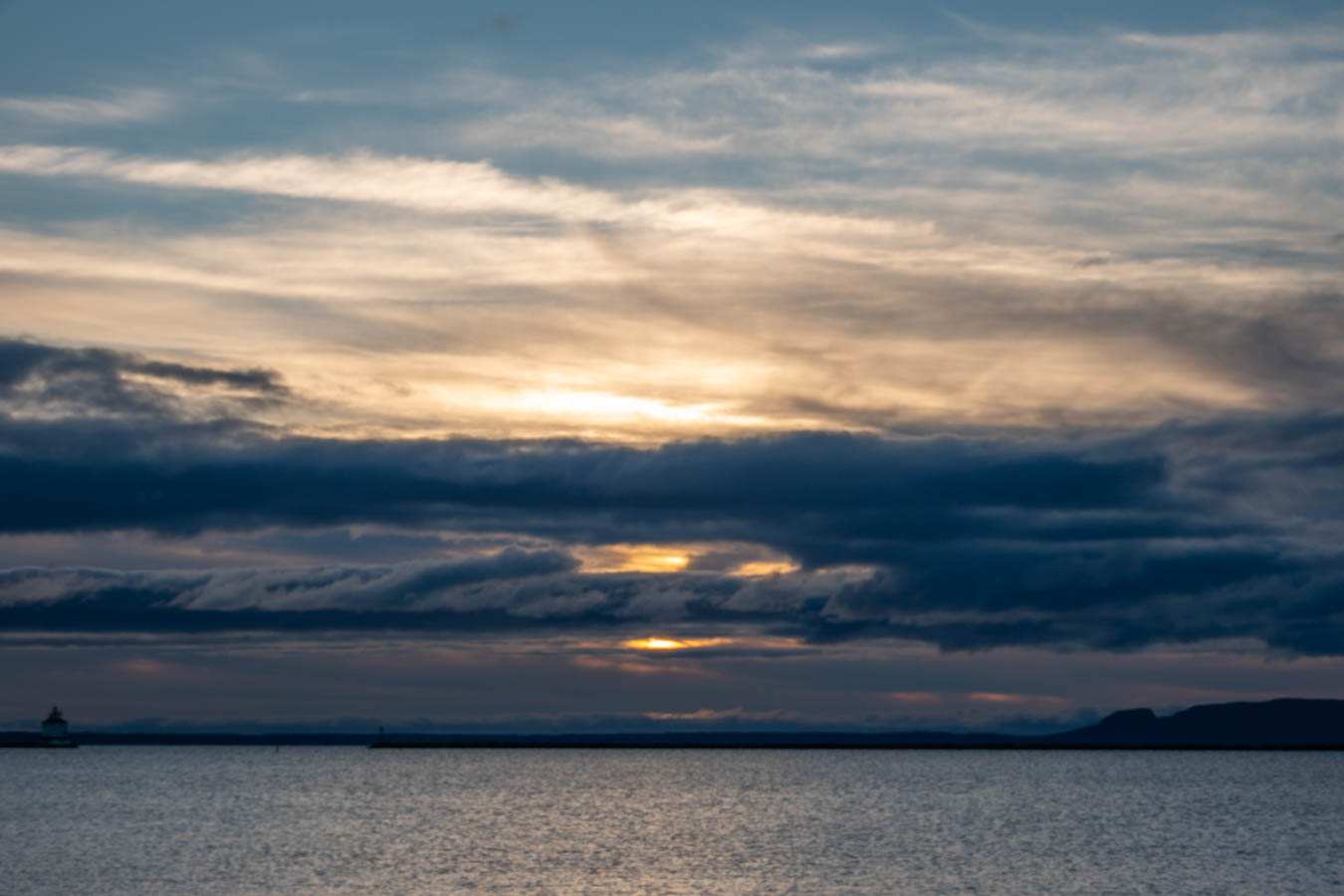 Cloud along the horizon. You get that a lot because of the lake. Makes for a crummy sunrise. There are clouds sooo maybe there will be some colour but I am not expecting much this morning.