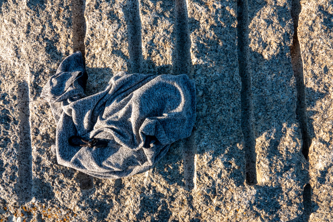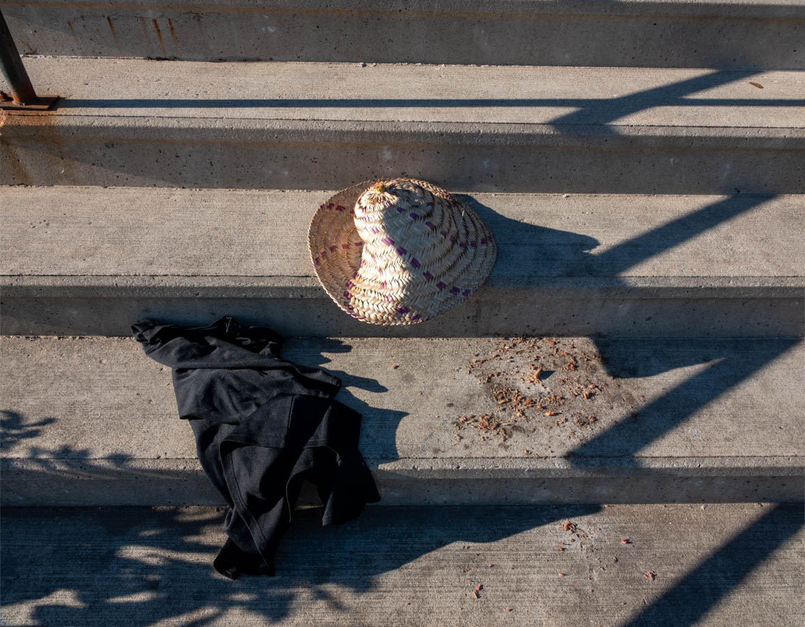Discarded trifecta. A hat,  whatever piece of clothing that is and vomit (discarded food)