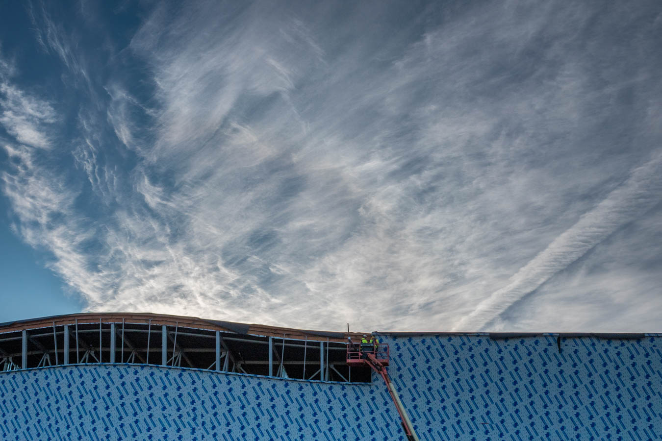 Mostly clear sky Cold. Some clouds south of the giant. They are moving north.