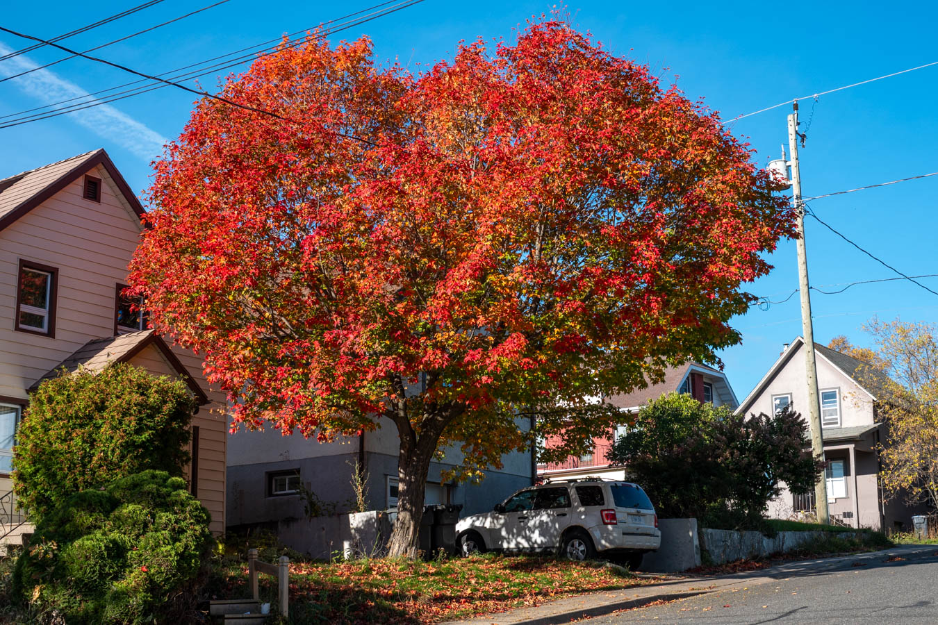 The sun is making the tree leaves pop.