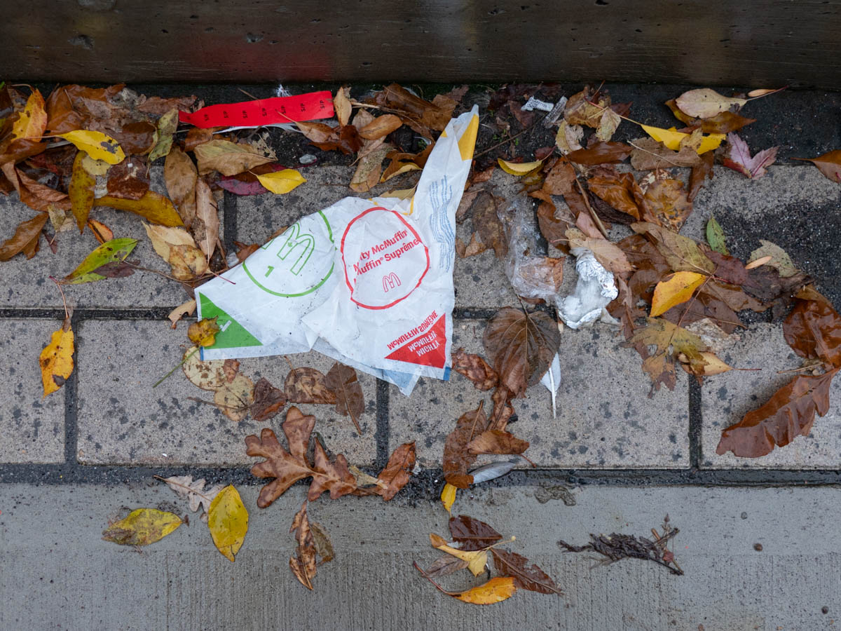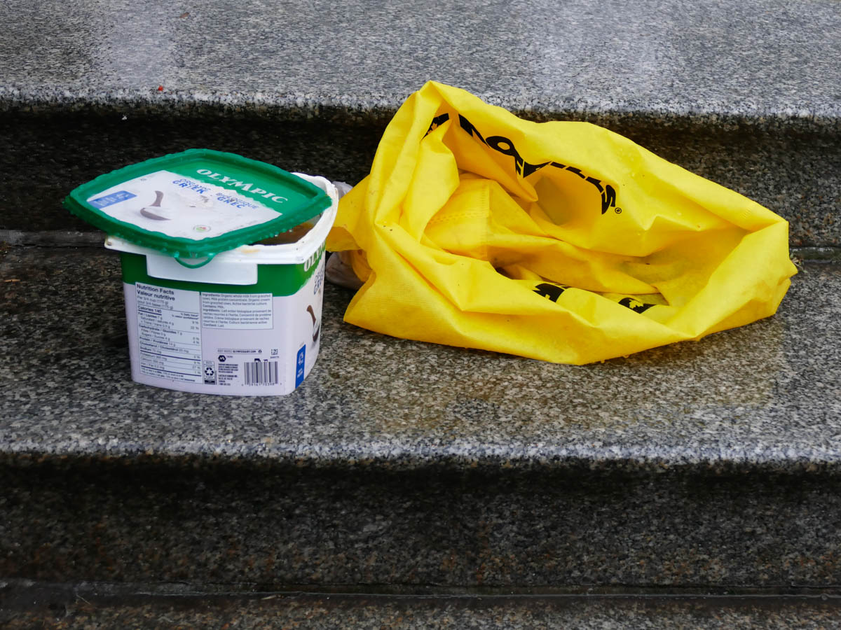 Thunder Bay – Tuesday October 21, 2025 by admin Overcast and drizzly. A black and white day. Can’t shoot into the wind as the lens would get wet. I did take a few photos. The rain does produce reflections Another reusable shopping bag busy saving the planet. Fall colours Minimalism.