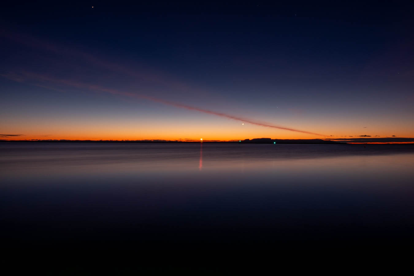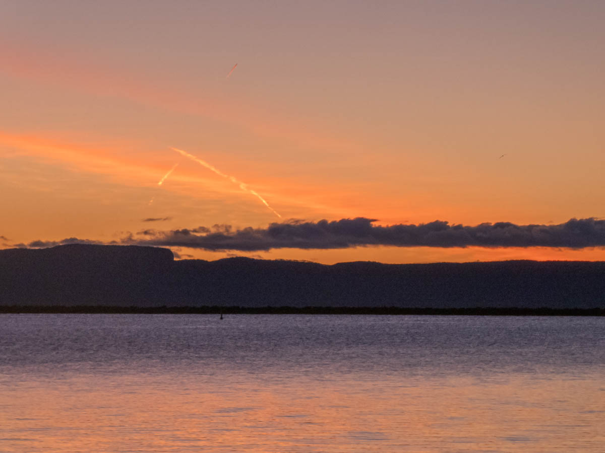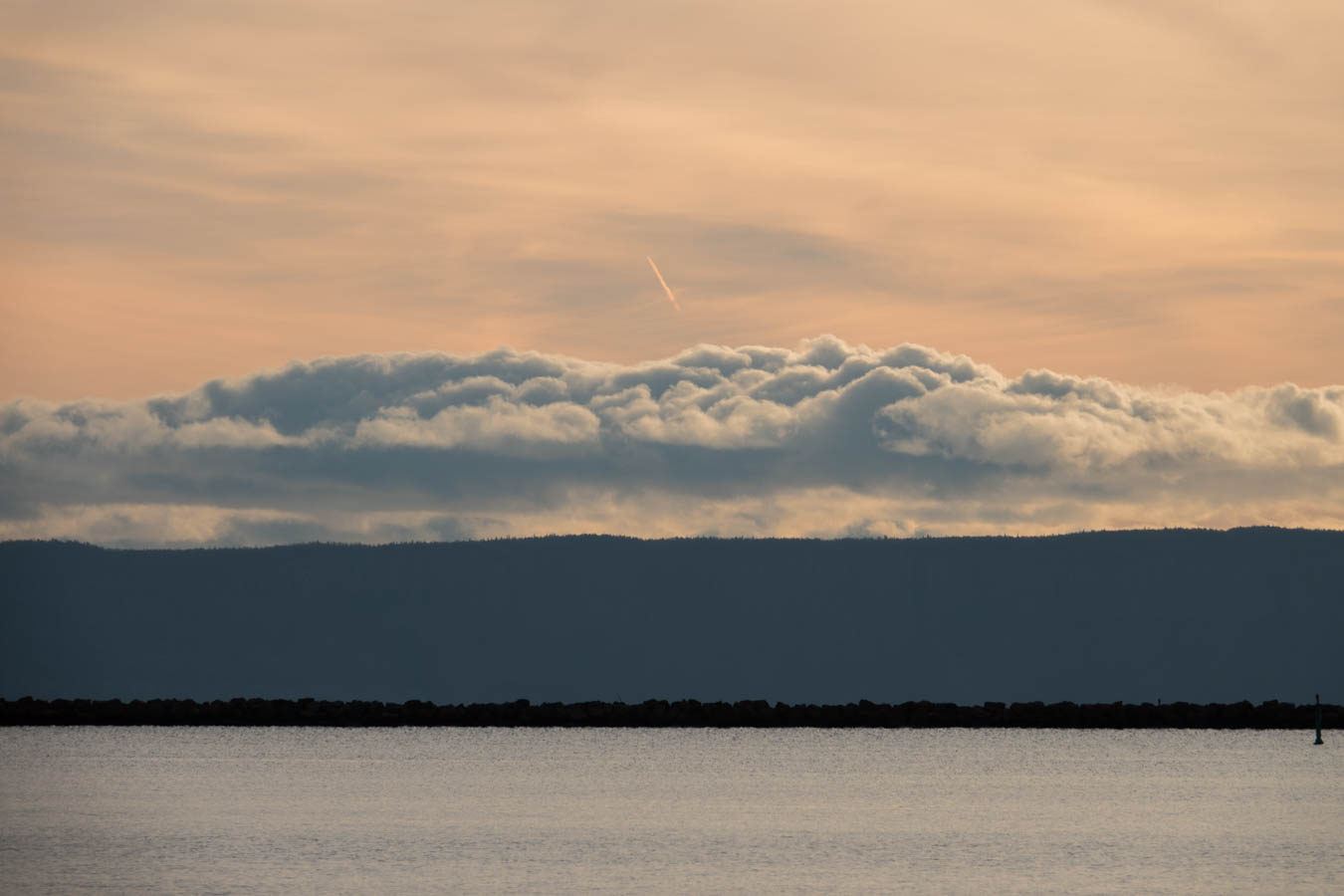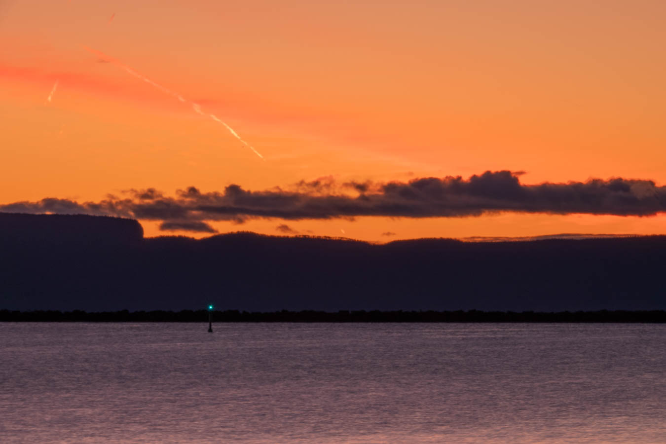 Clear sky with a what appears to be a jet contrail?  Could just be a cloud.  We will get some colour out of that. If it is a cloud, its a strannge one.