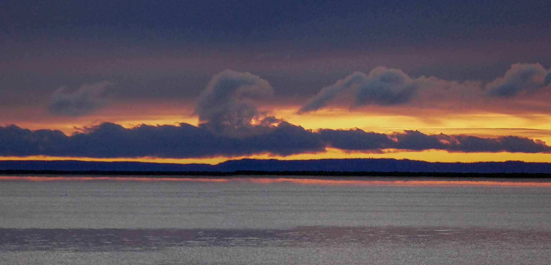 The sun finally cleared the cloud bank. I had moved on by then. Still, nice reflections.