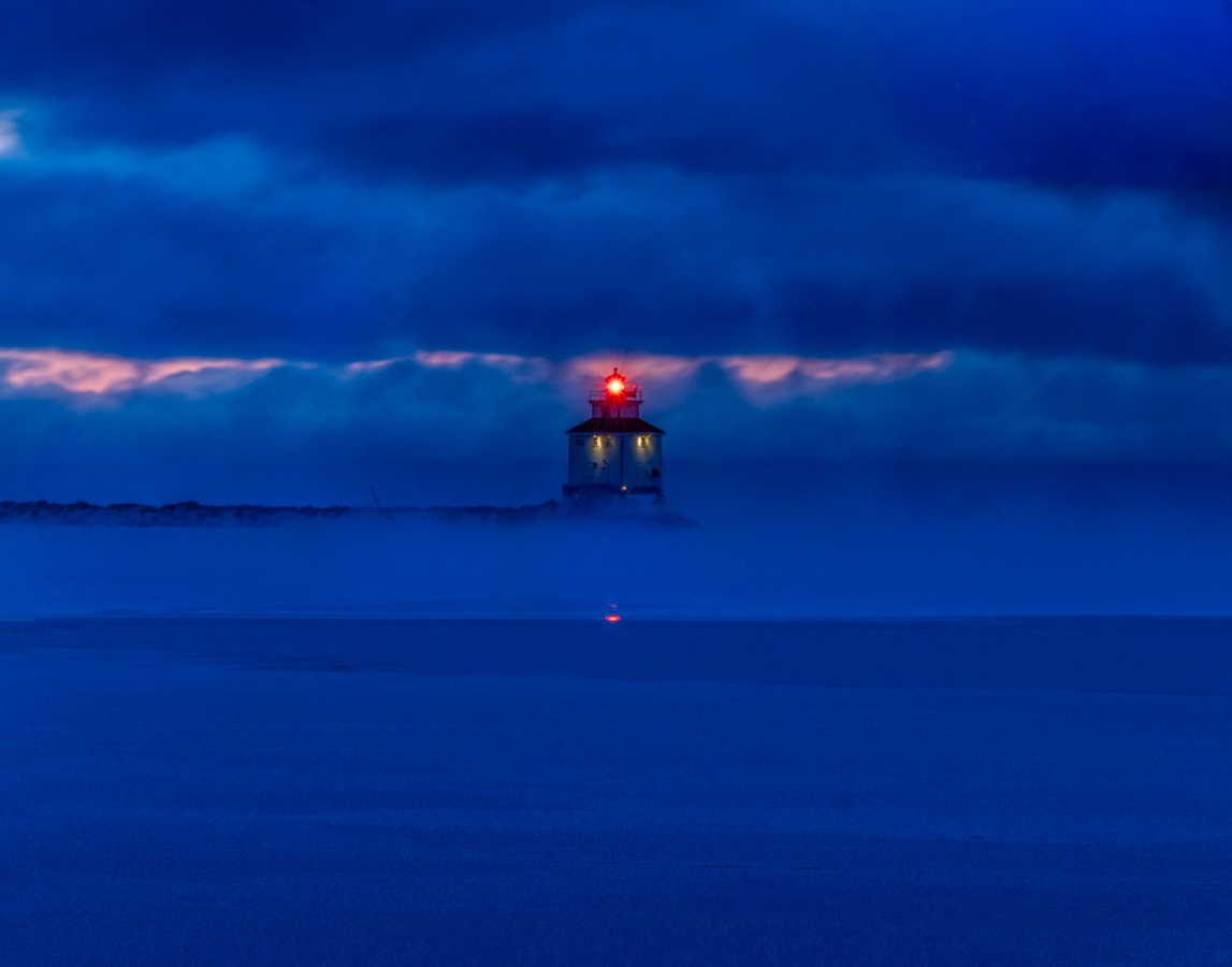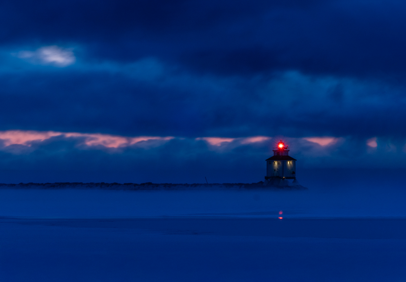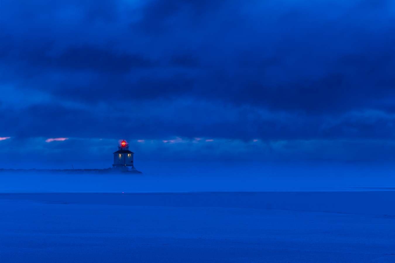 The red light looks nice against the blue background