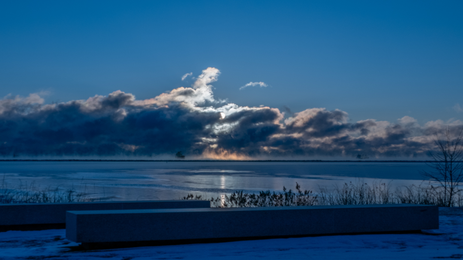 Its going to take the sun a while to clear that cloud bank. Hope the camera lasts that long. It is not liking the cold.