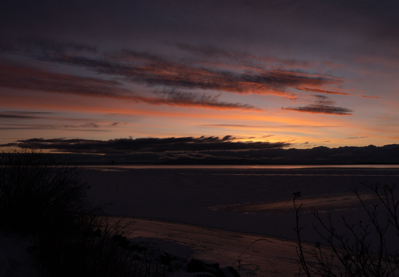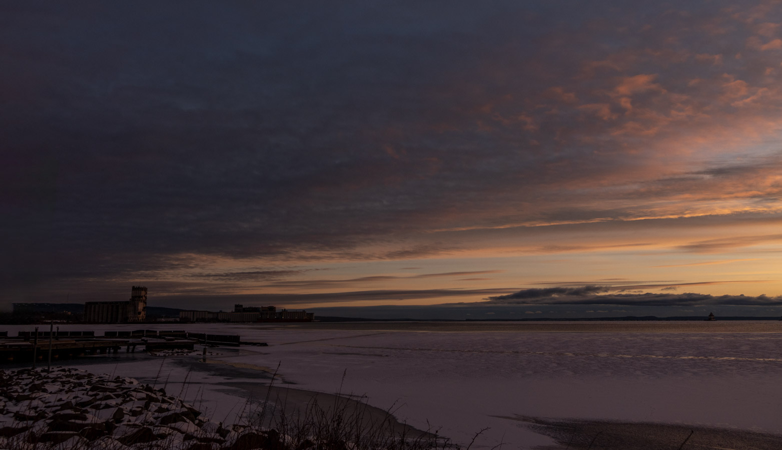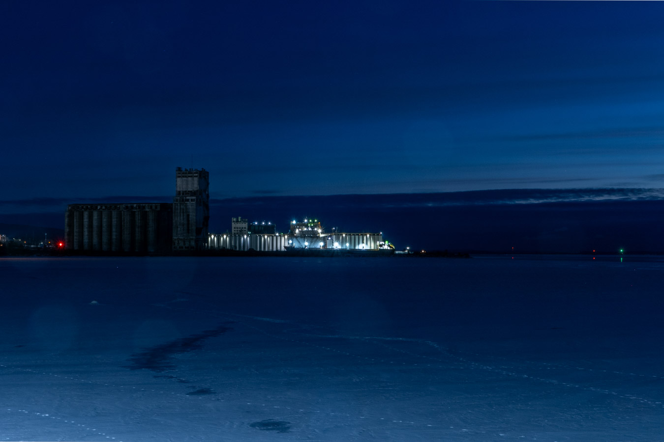 Thunder Bay – Friday December 13, 2025 by admin Blue hour The usual subjects I like this Put a Gradient Filter on. The filter was supposed to darken the top part of the photo. It did that but it also produced a tint. We have some colour showing up