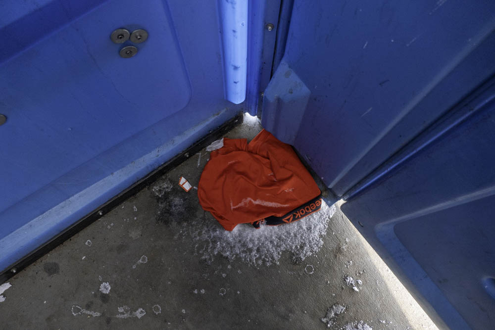 Hard to explain this. Why would someone leave their underwear in a portable toilet? Did they have a accidental anal discharge?