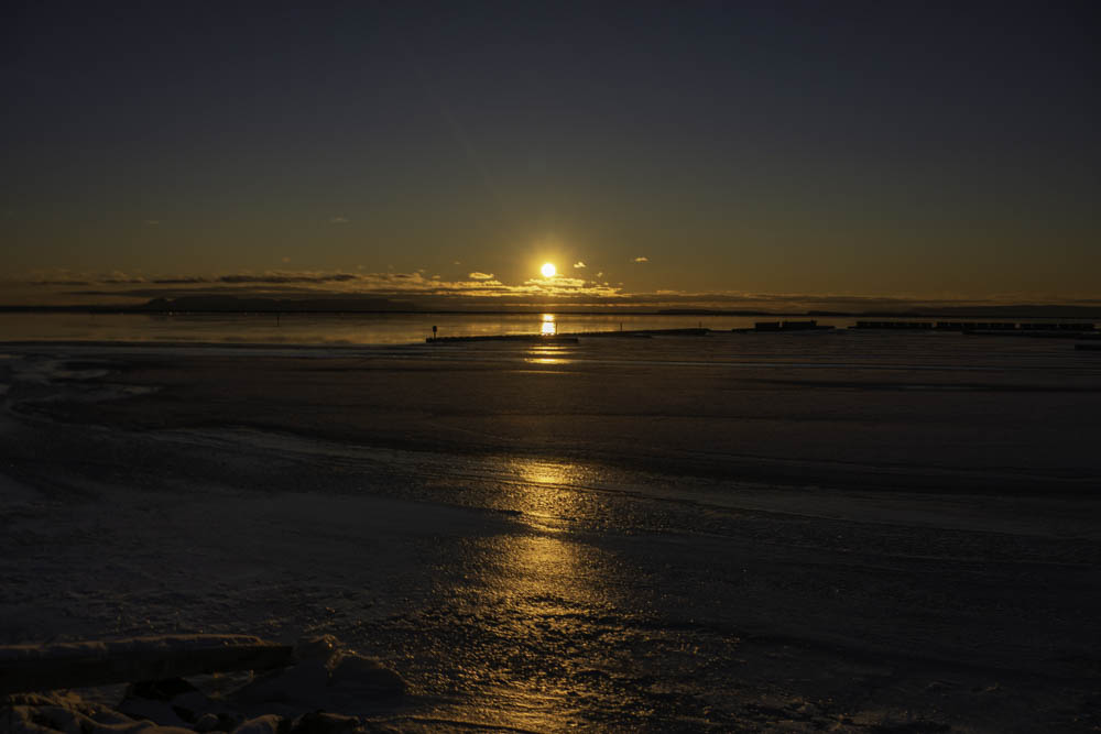 Mostly clear morning. Warm. We have colour along the horizon. Nice reflections Nice colours This is one of those 360 degree sunrises. Colour in the sky all around Nice Sun preparing to show up. Only a few days left before winter officially begins. Then the sun will begin its journey back towards the giant We … Read more